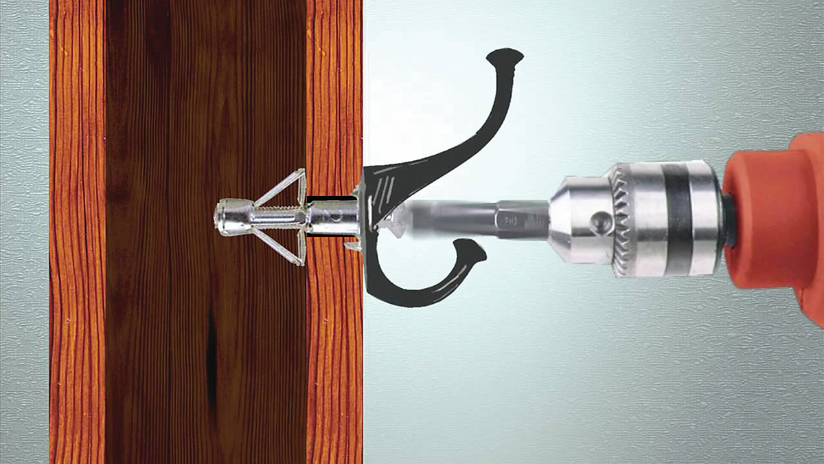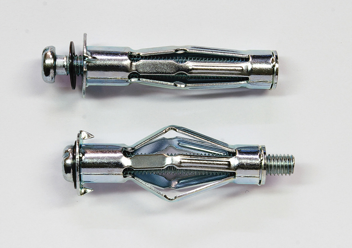 Ten, kur pritrūksta plastikinio kaiščio stiprumo, naudojami metaliniai „gėlytės“ tipo inkarai. Build.com nuotr.