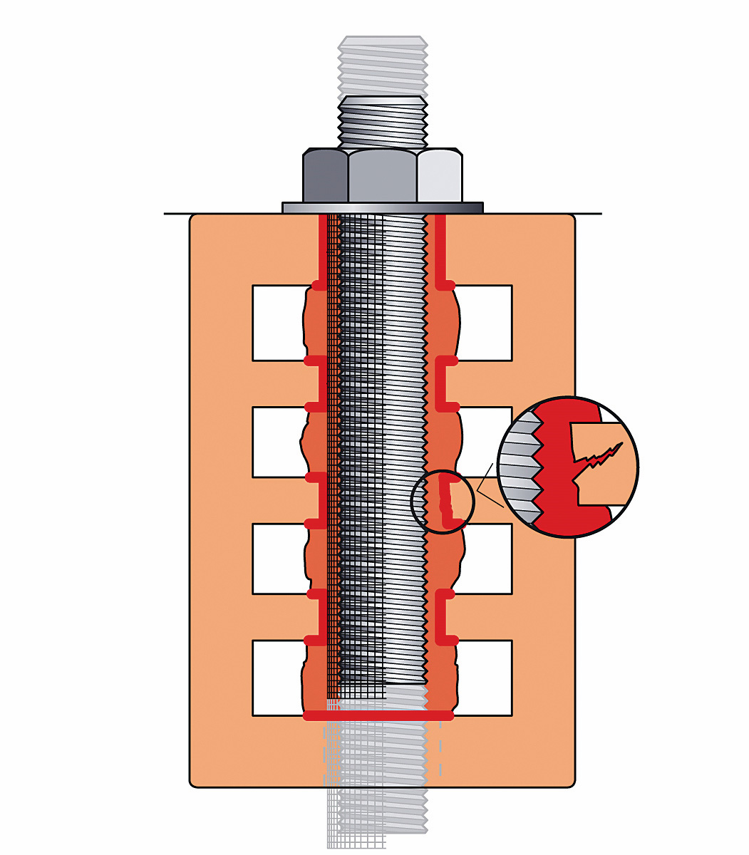 Mažesnio tankio mūre patikimiau įsitvirtina didesnio skersmens kaiščiai, kurių išsiplečiančioji zona yra ilgesnė nei įprasta. Gamintojo nuotr.