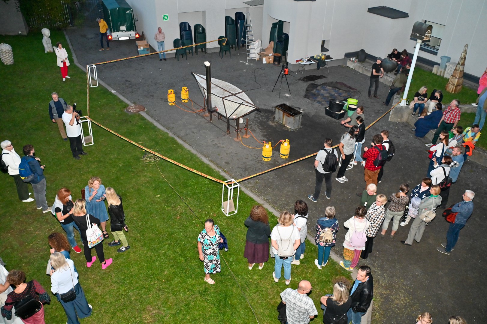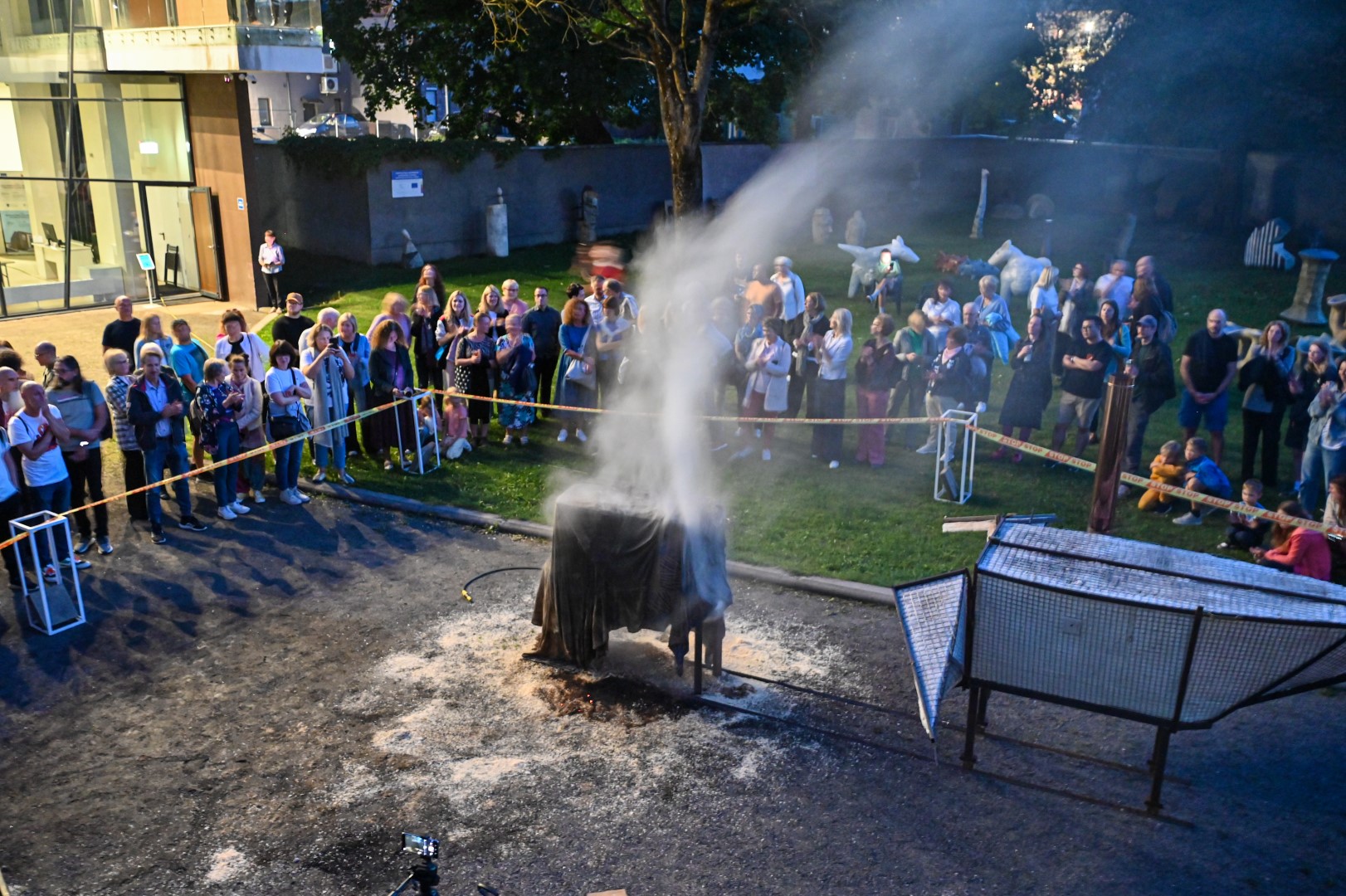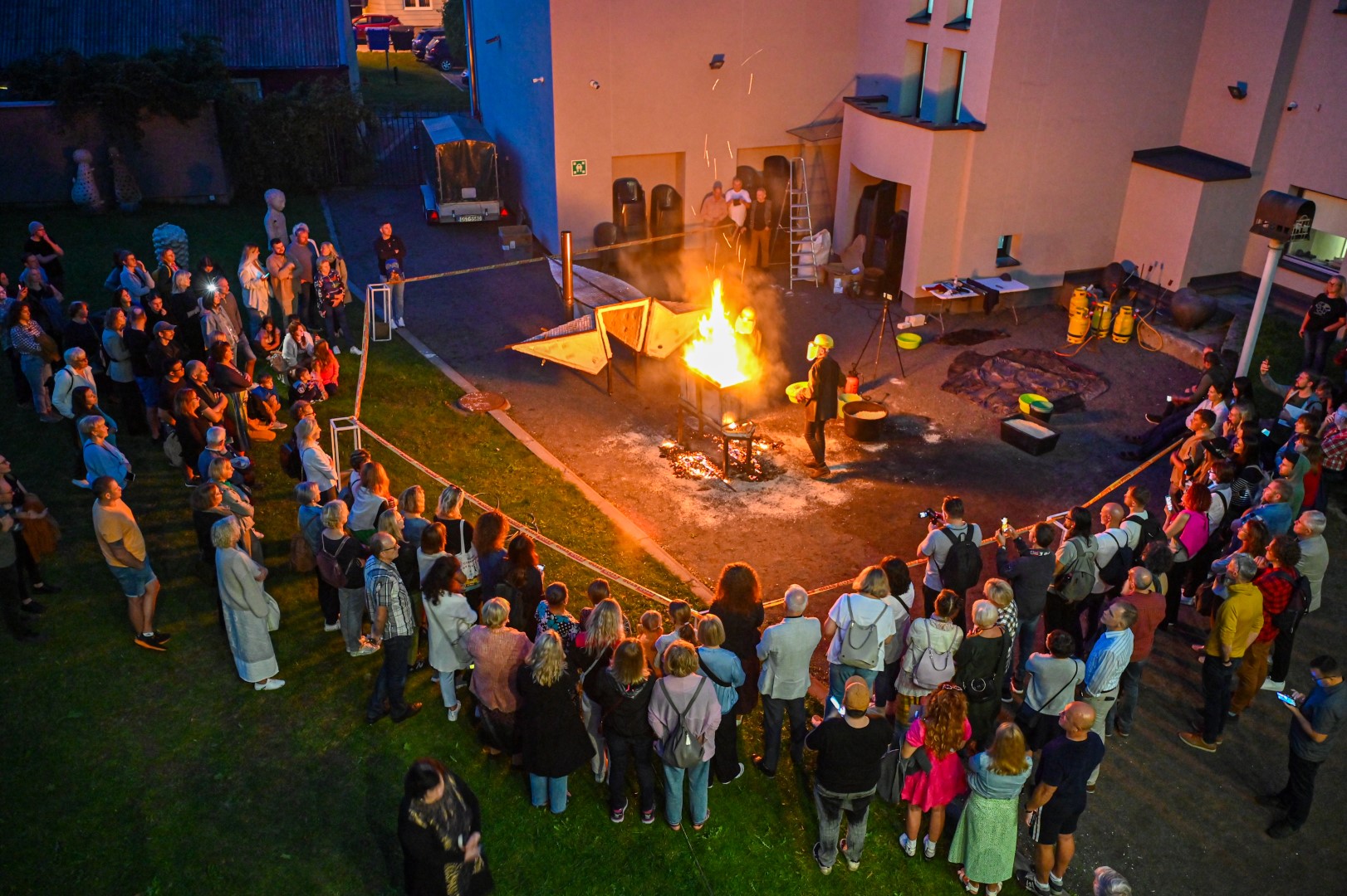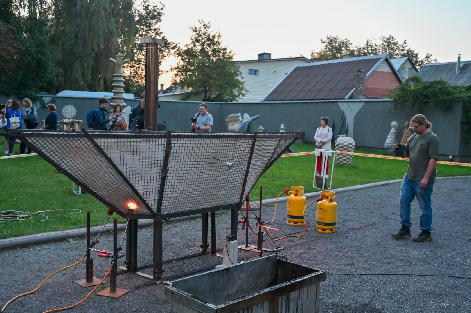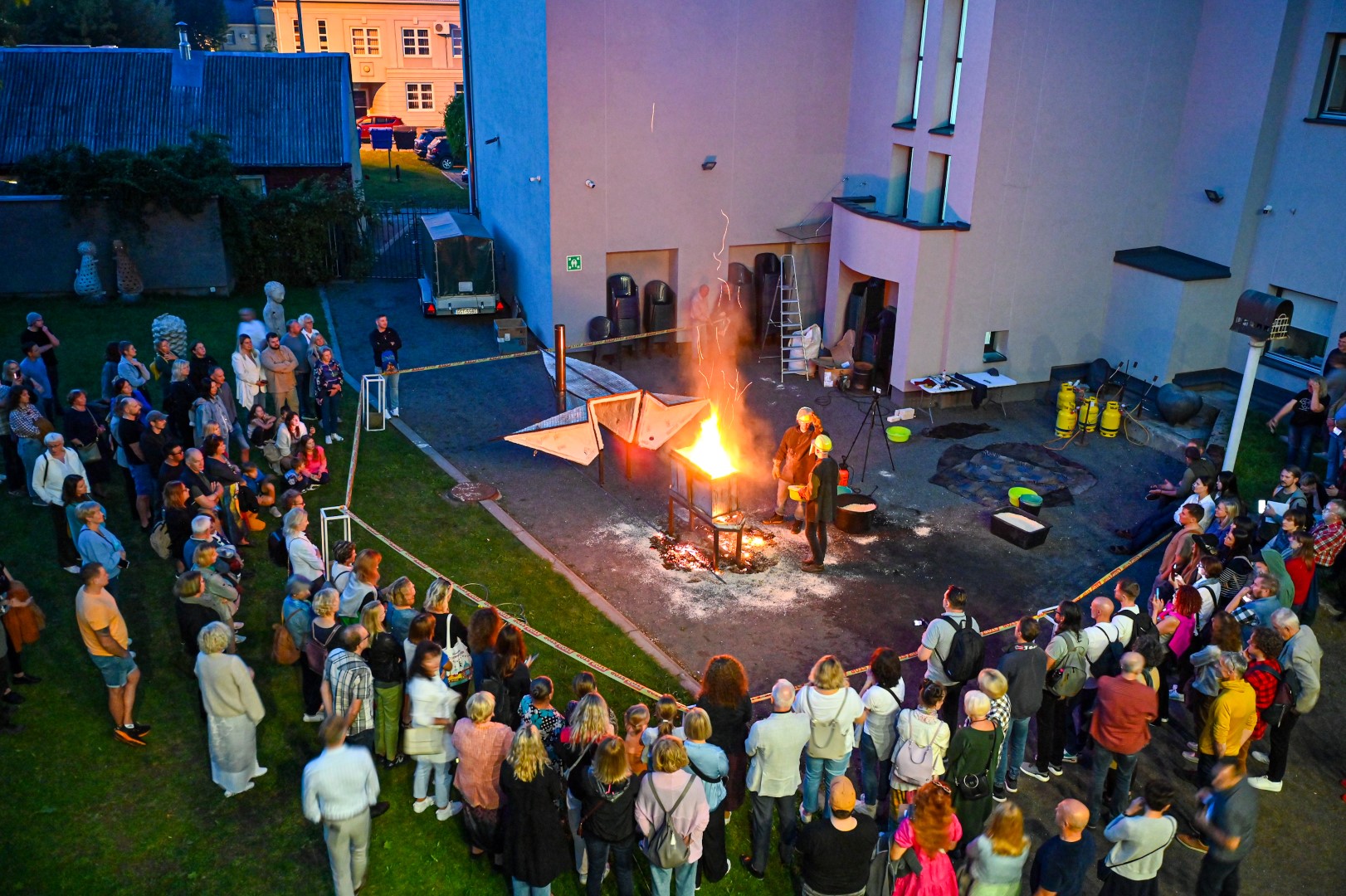 Panevėžio dailės galerijos kiemelyje vyko parodomasis „copper matte“ keramikos degimas.