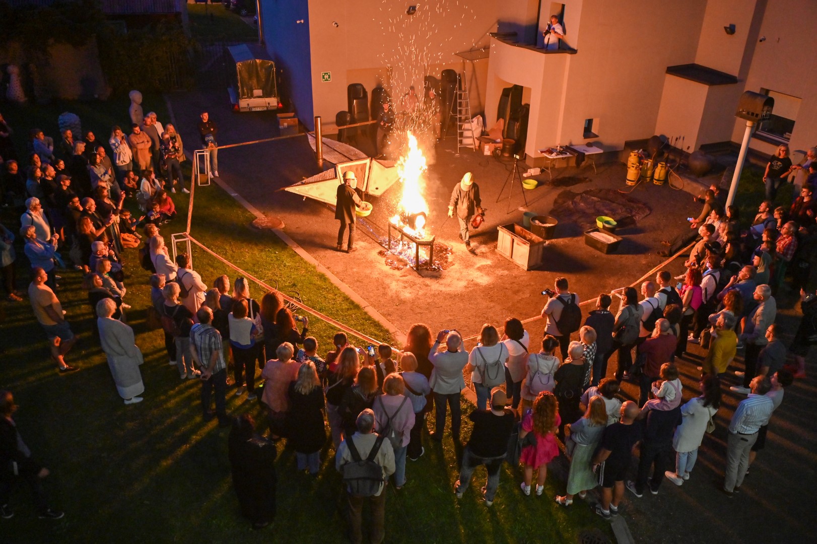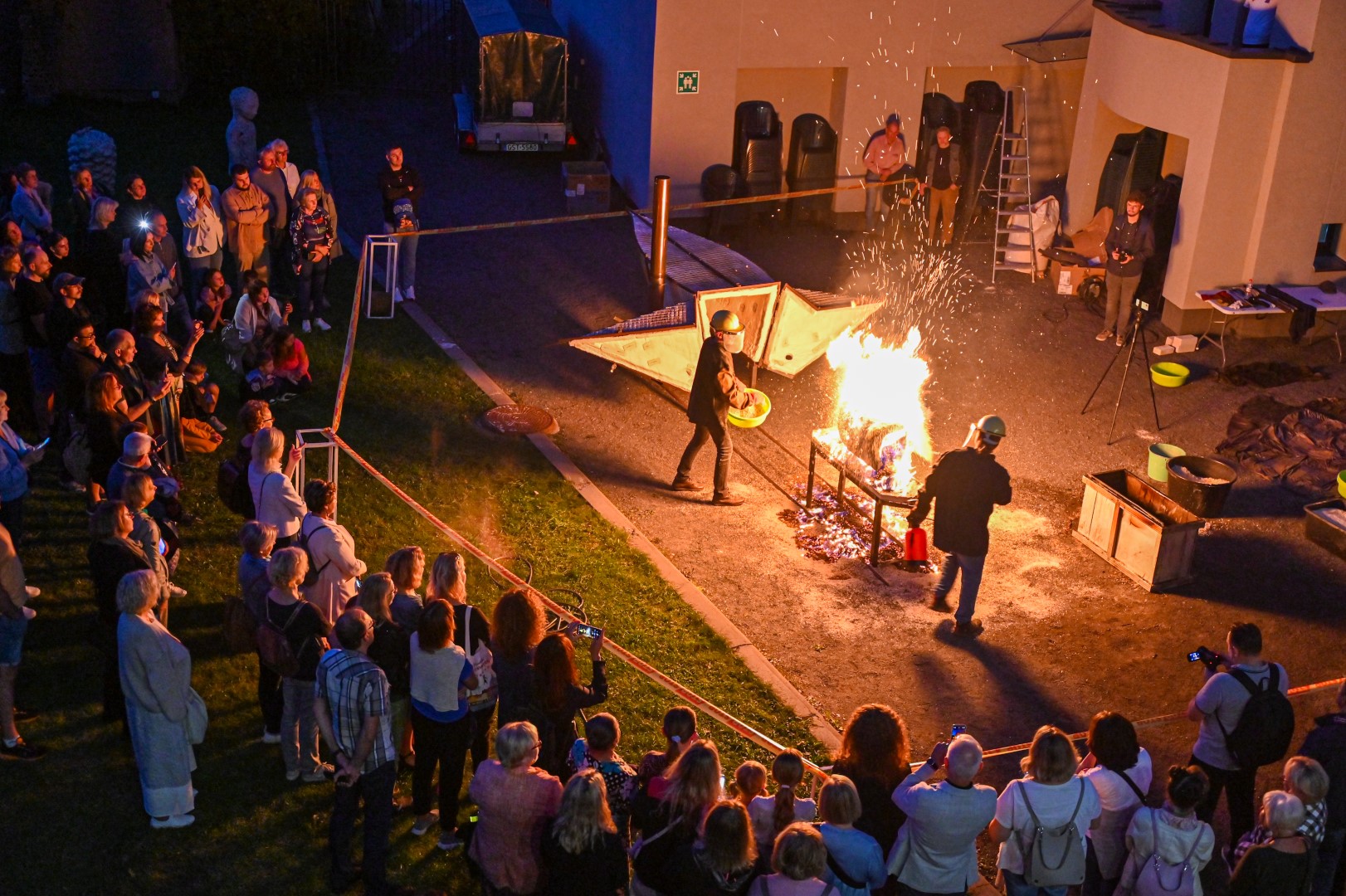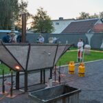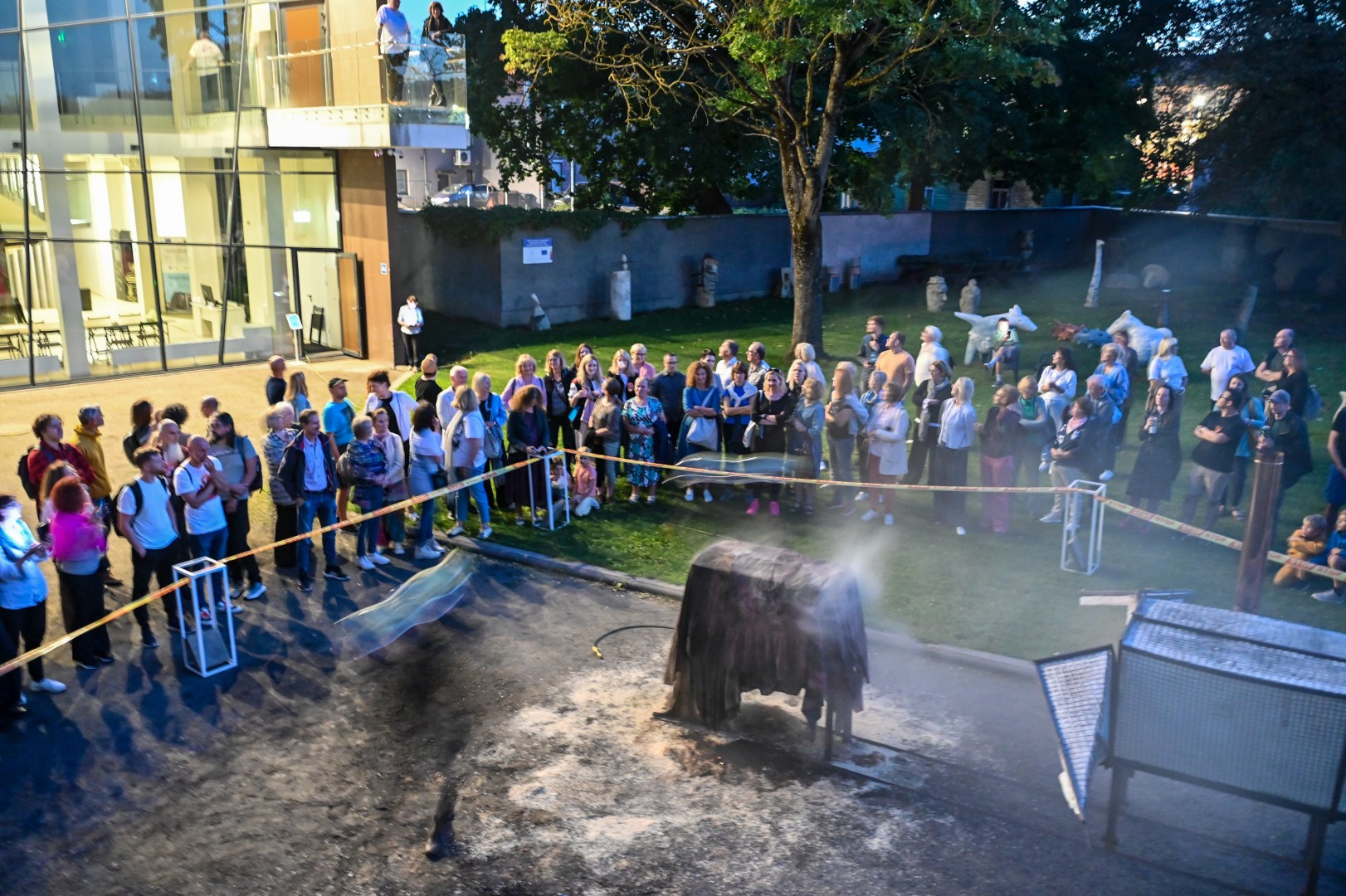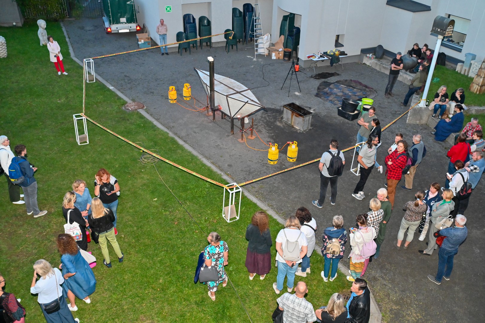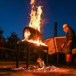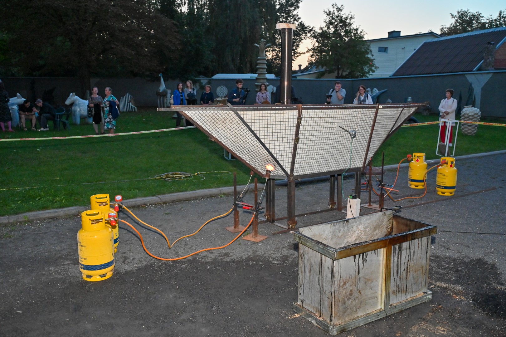 Panevėžio dailės galerijos kiemelyje vyko parodomasis „copper matte“ keramikos degimas.