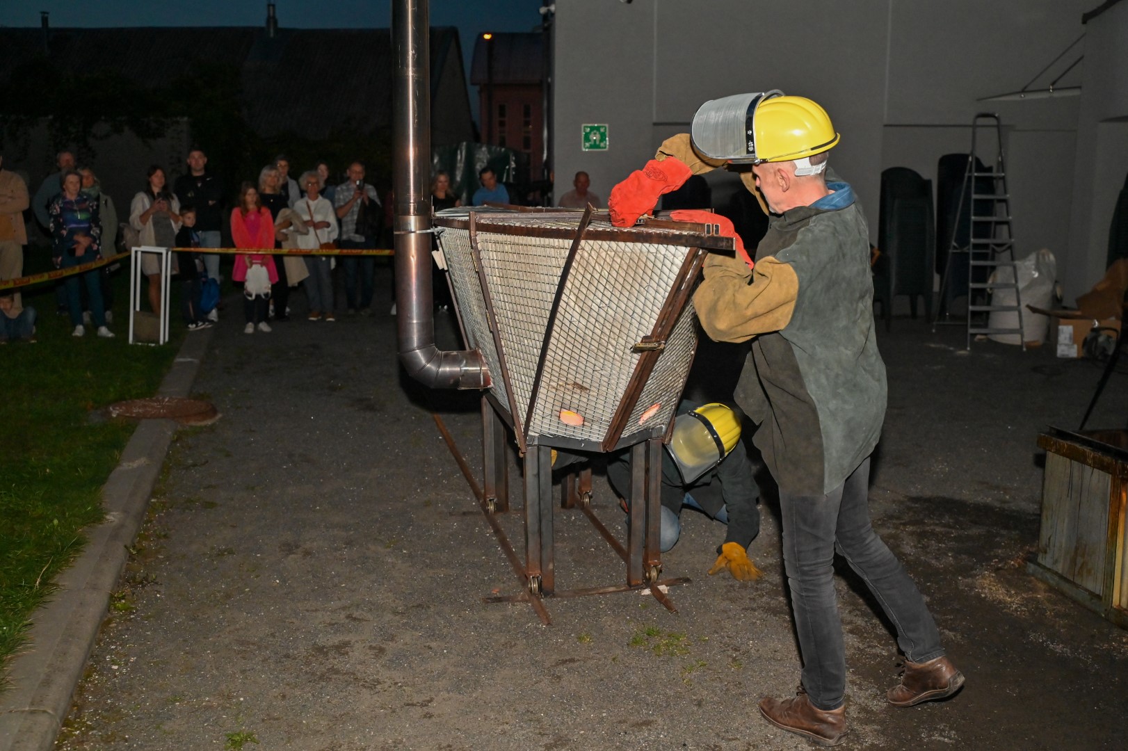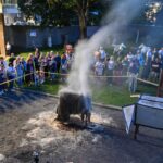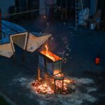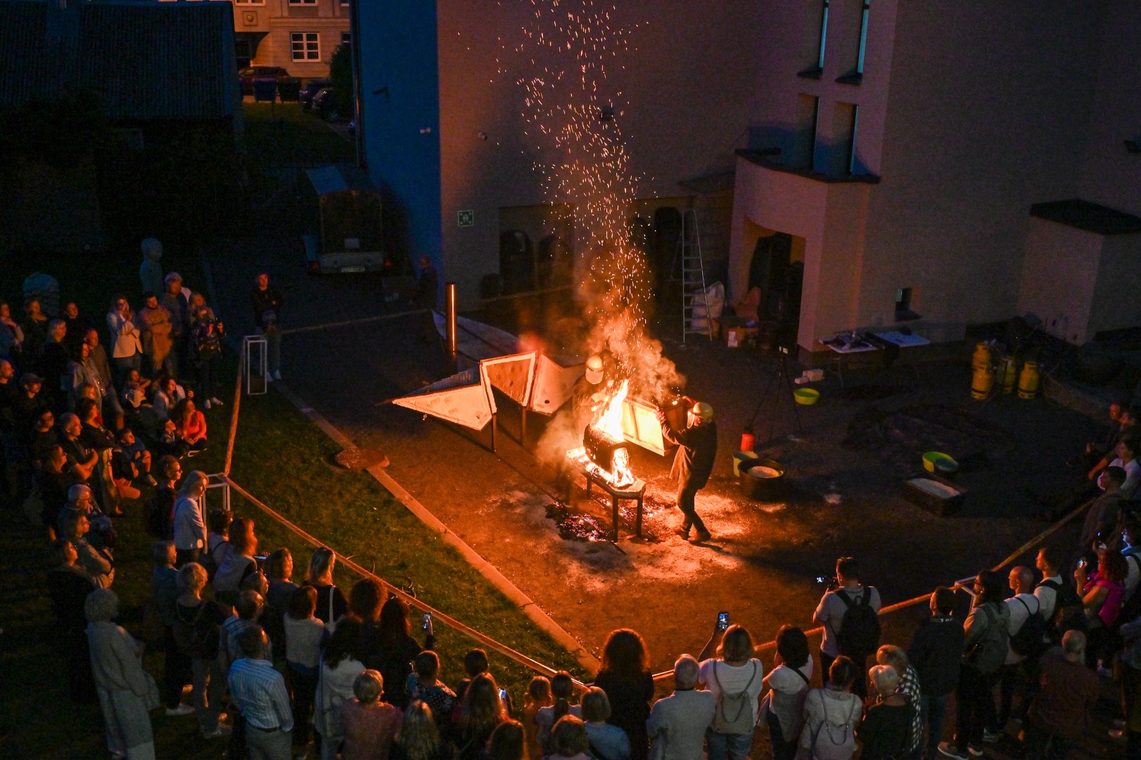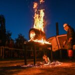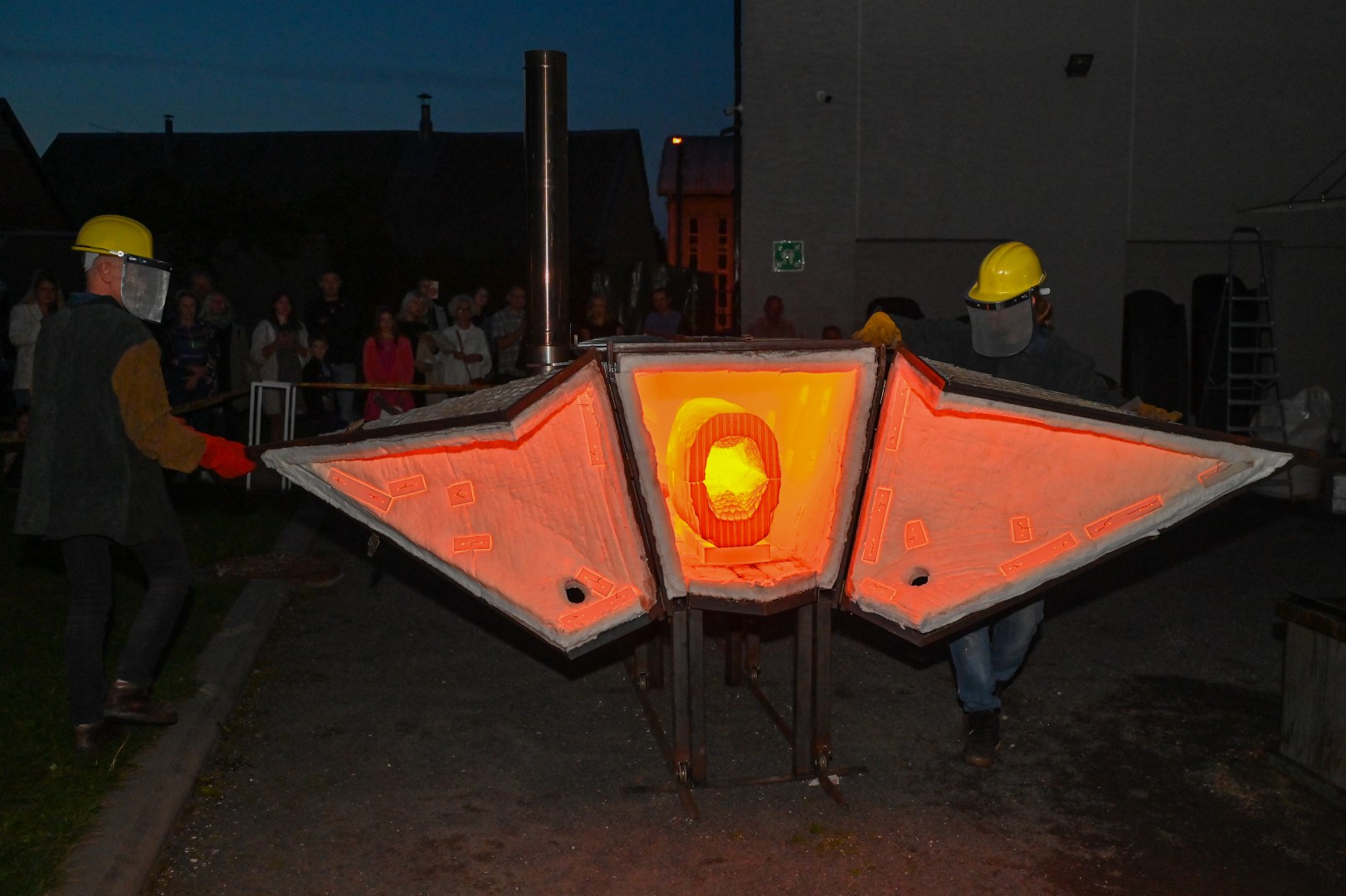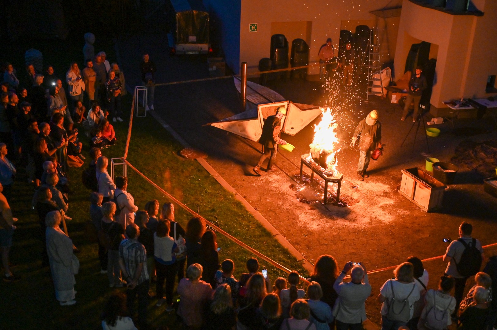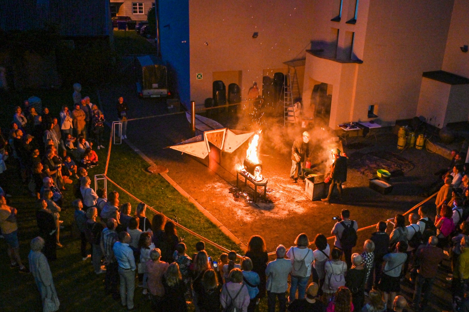 Panevėžio dailės galerijos kiemelyje vyko parodomasis „copper matte“ keramikos degimas.