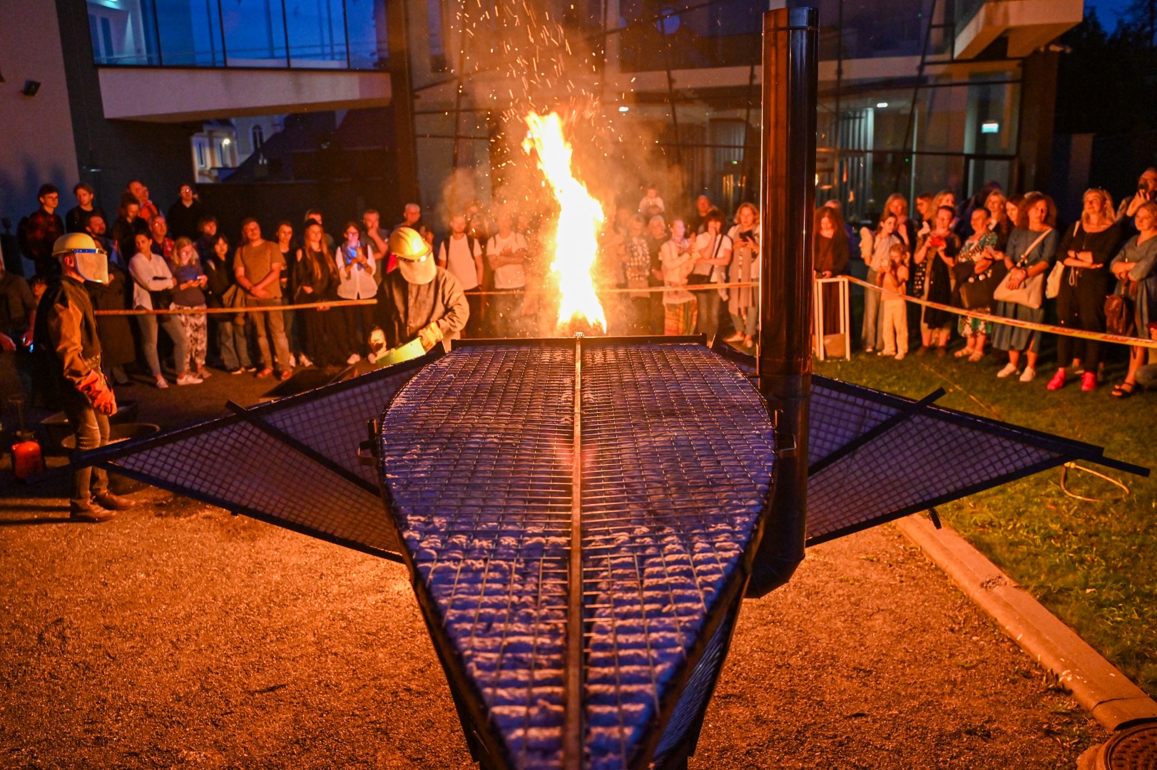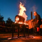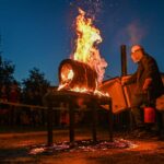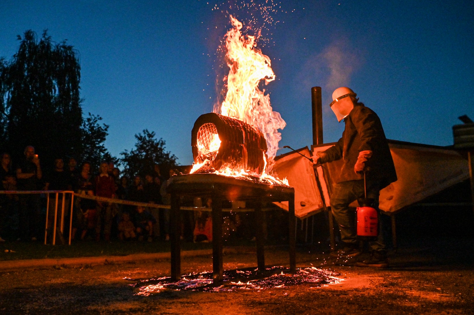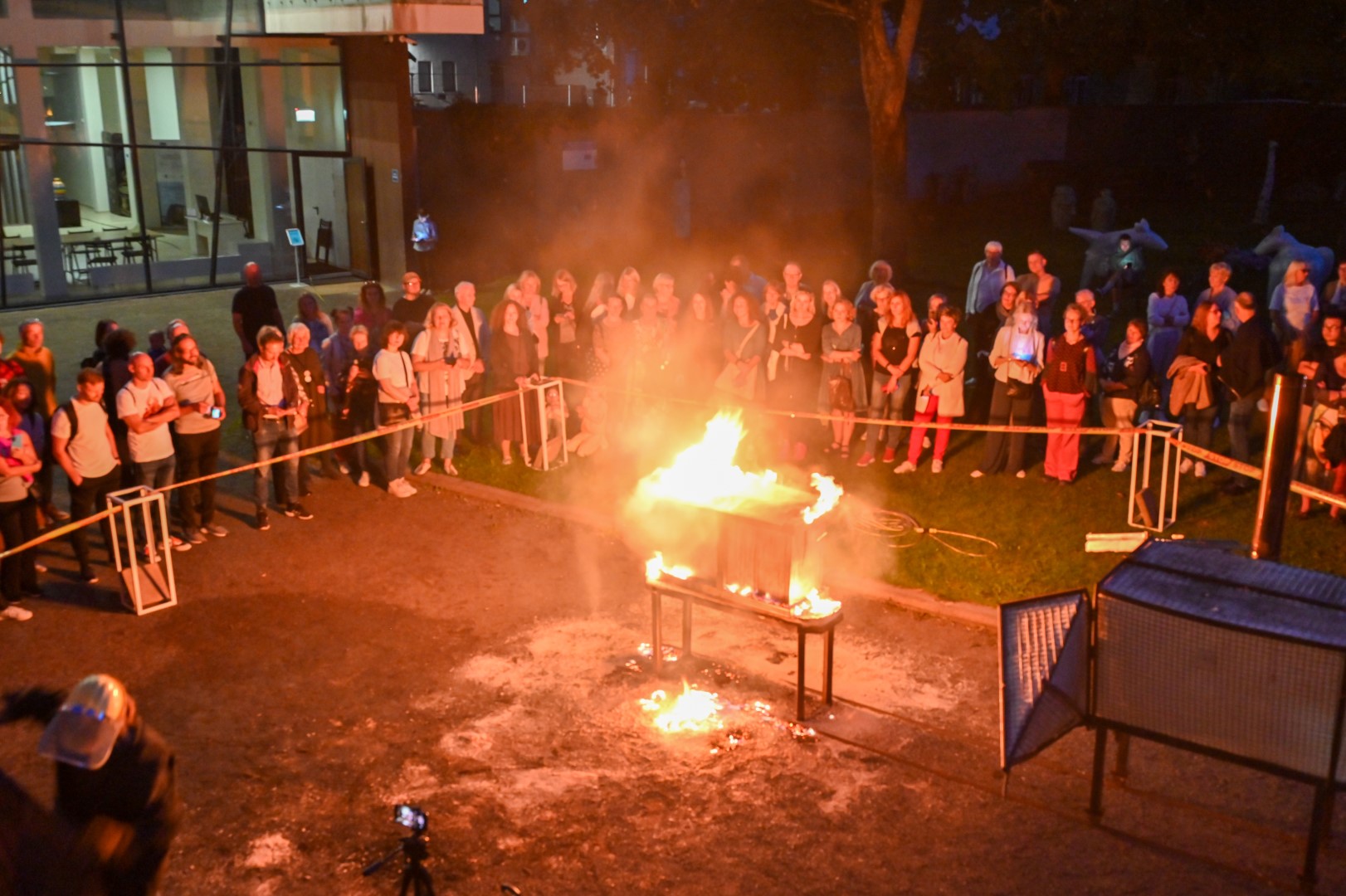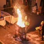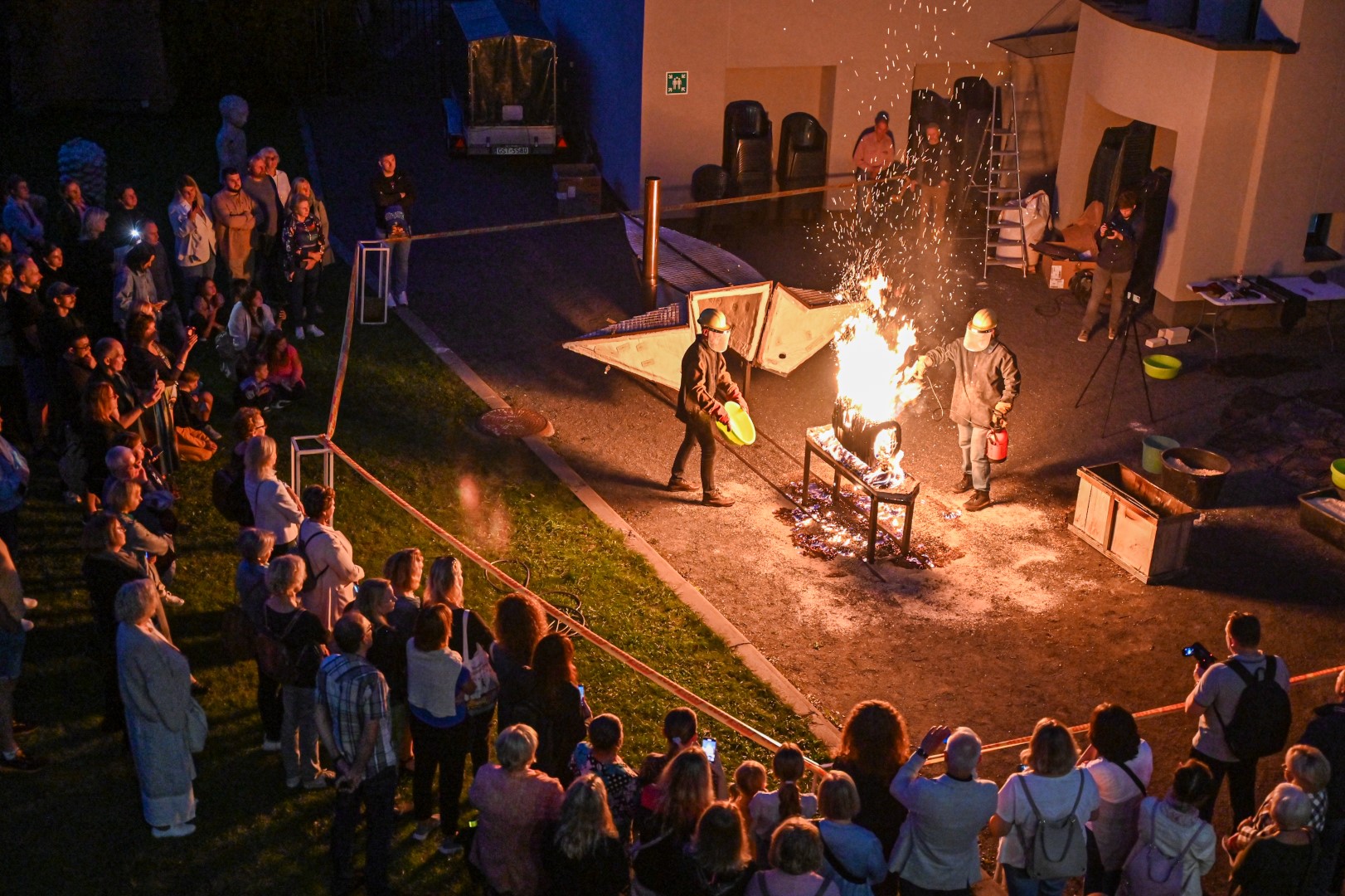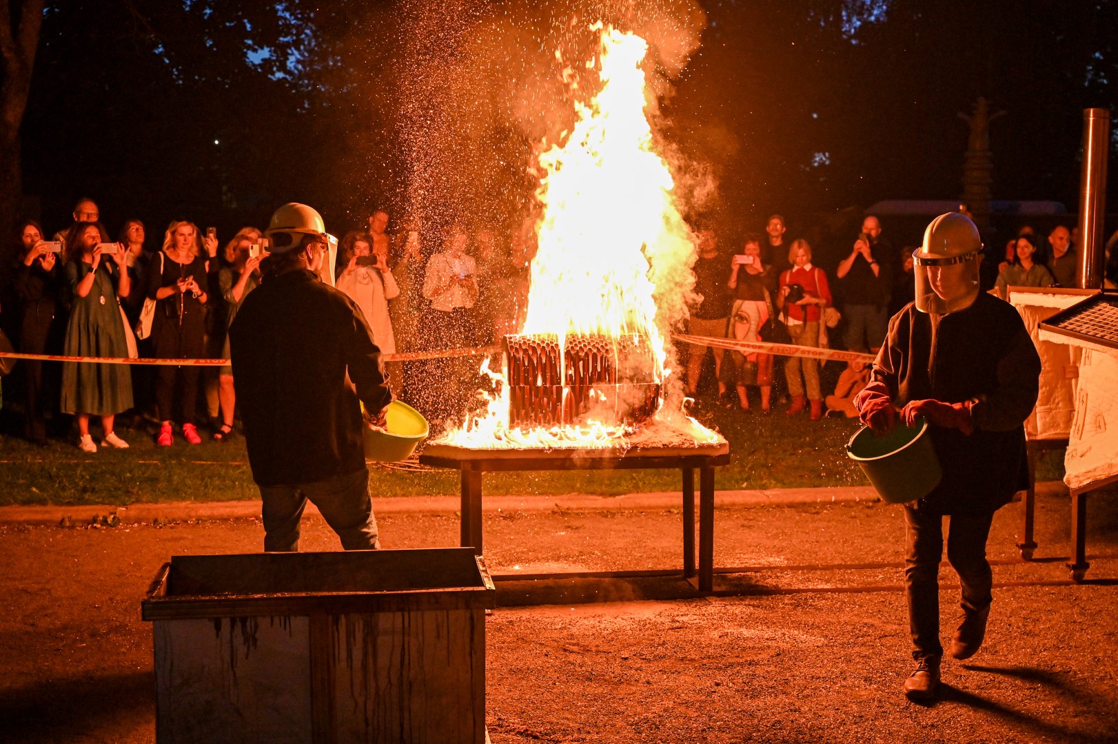 Panevėžio dailės galerijos kiemelyje vyko parodomasis „copper matte“ keramikos degimas.