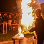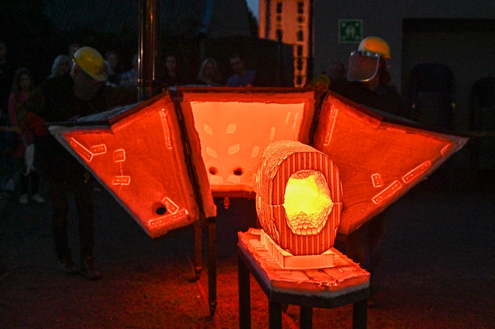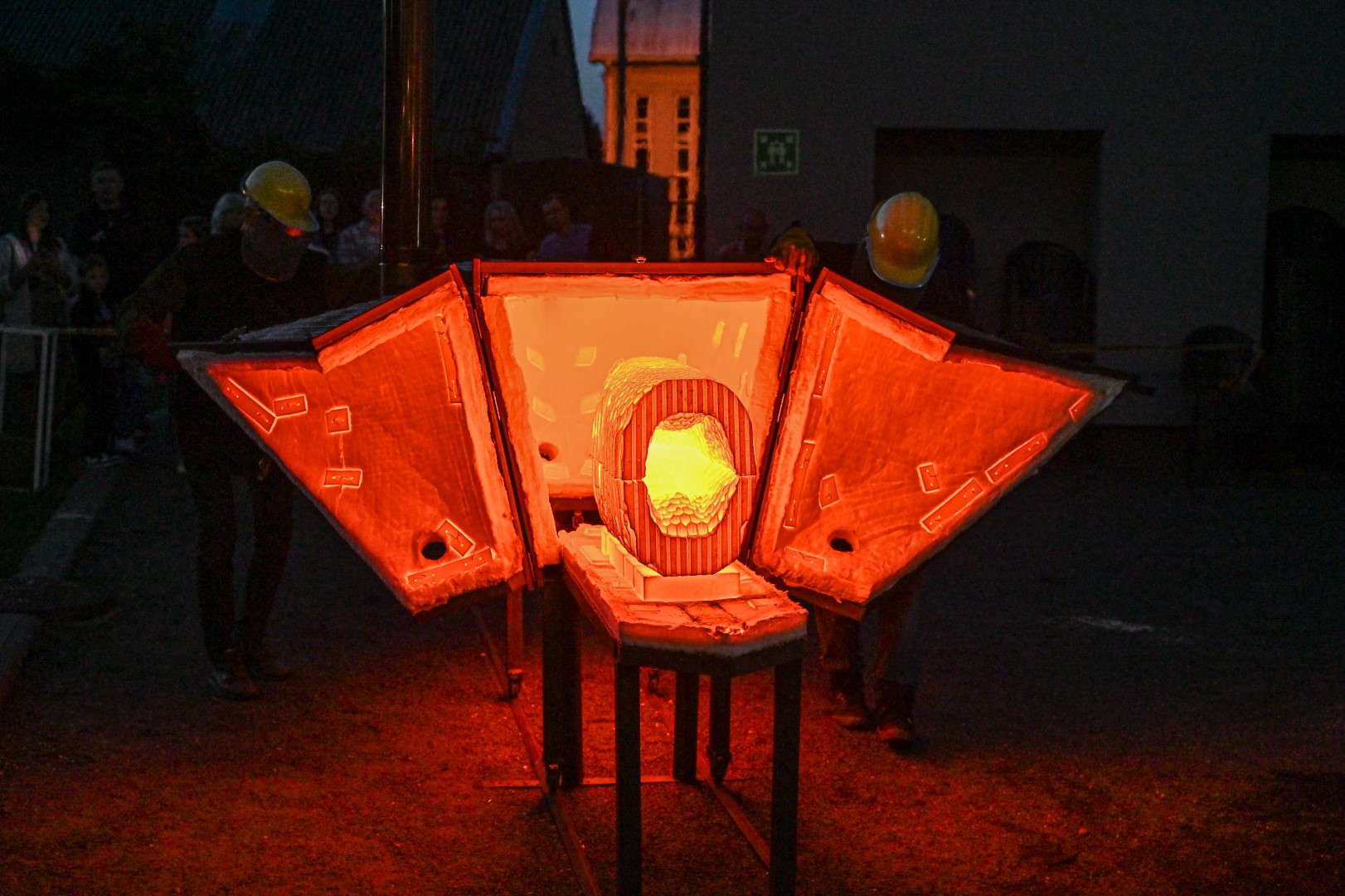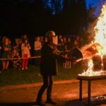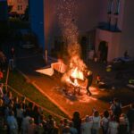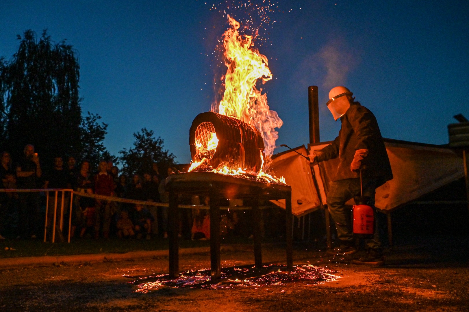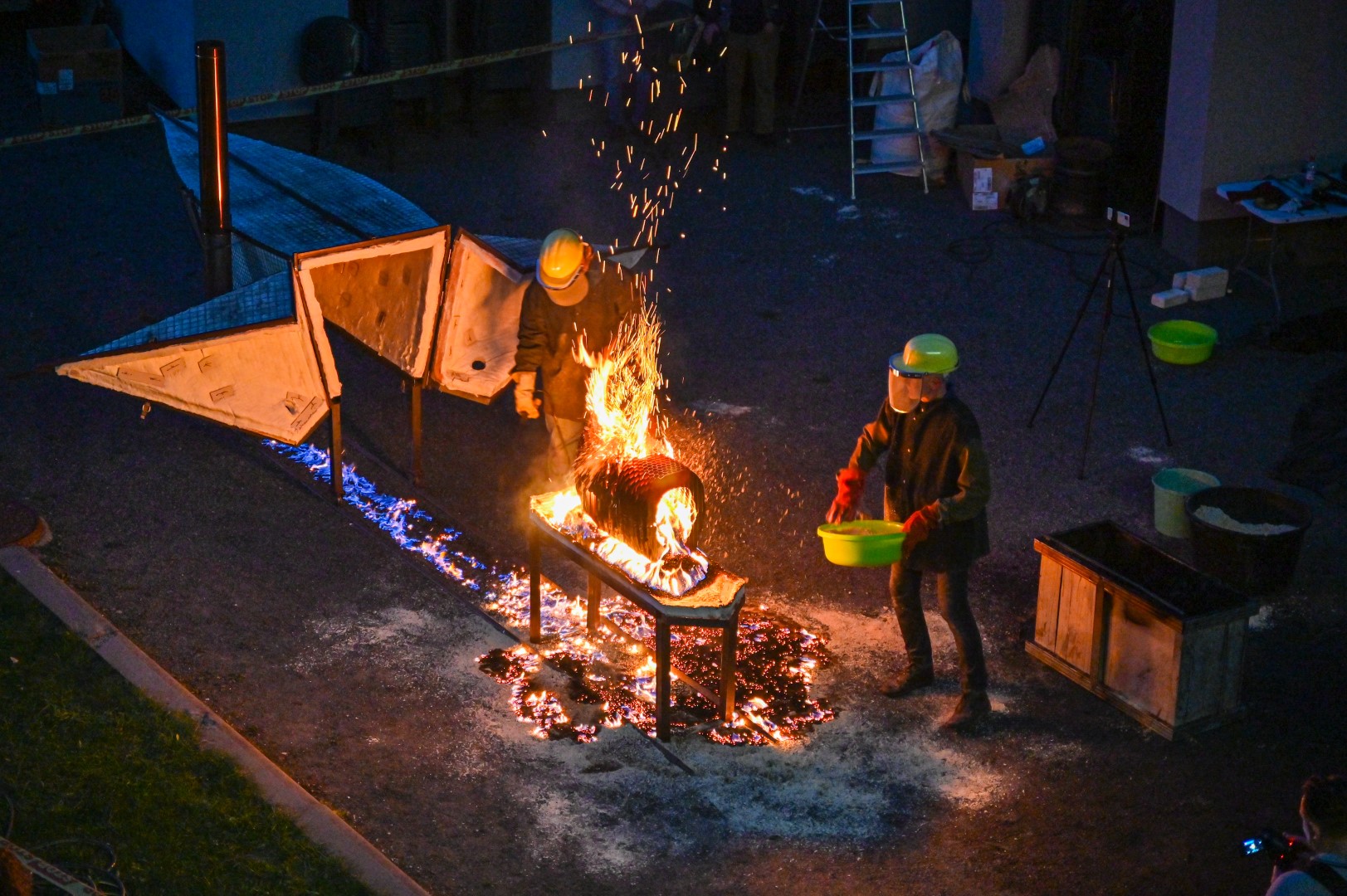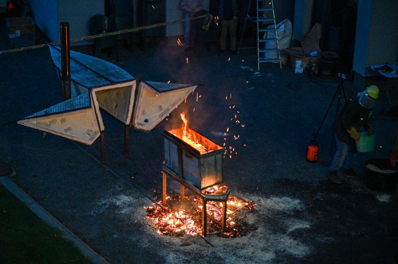 Panevėžio dailės galerijos kiemelyje vyko parodomasis „copper matte“ keramikos degimas.