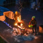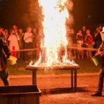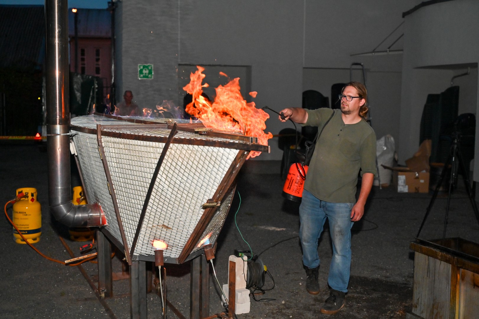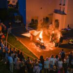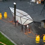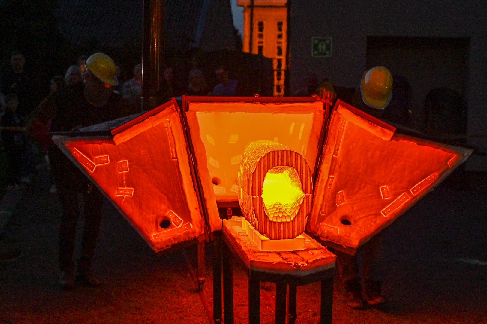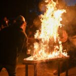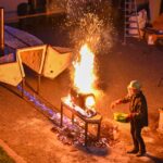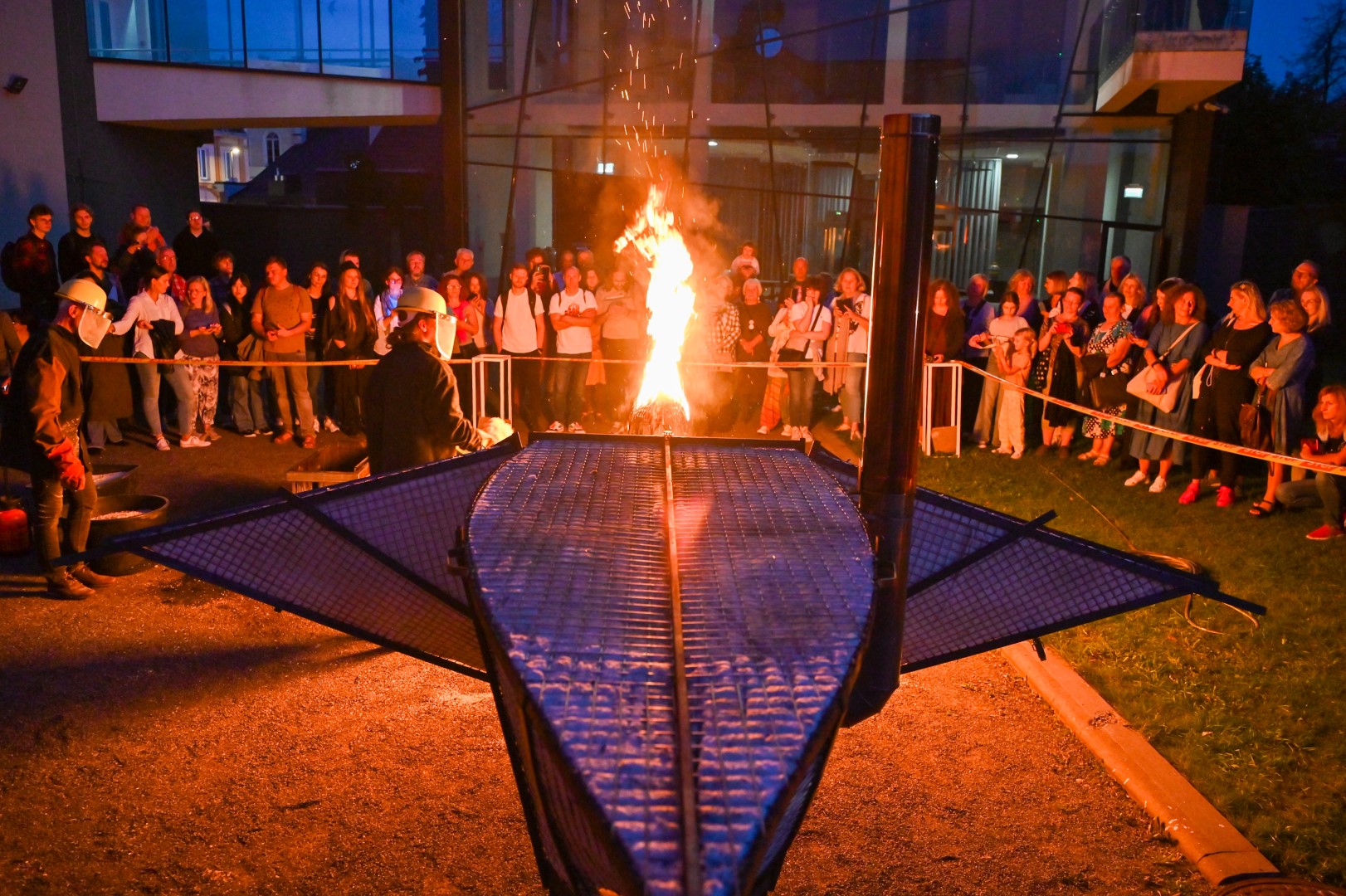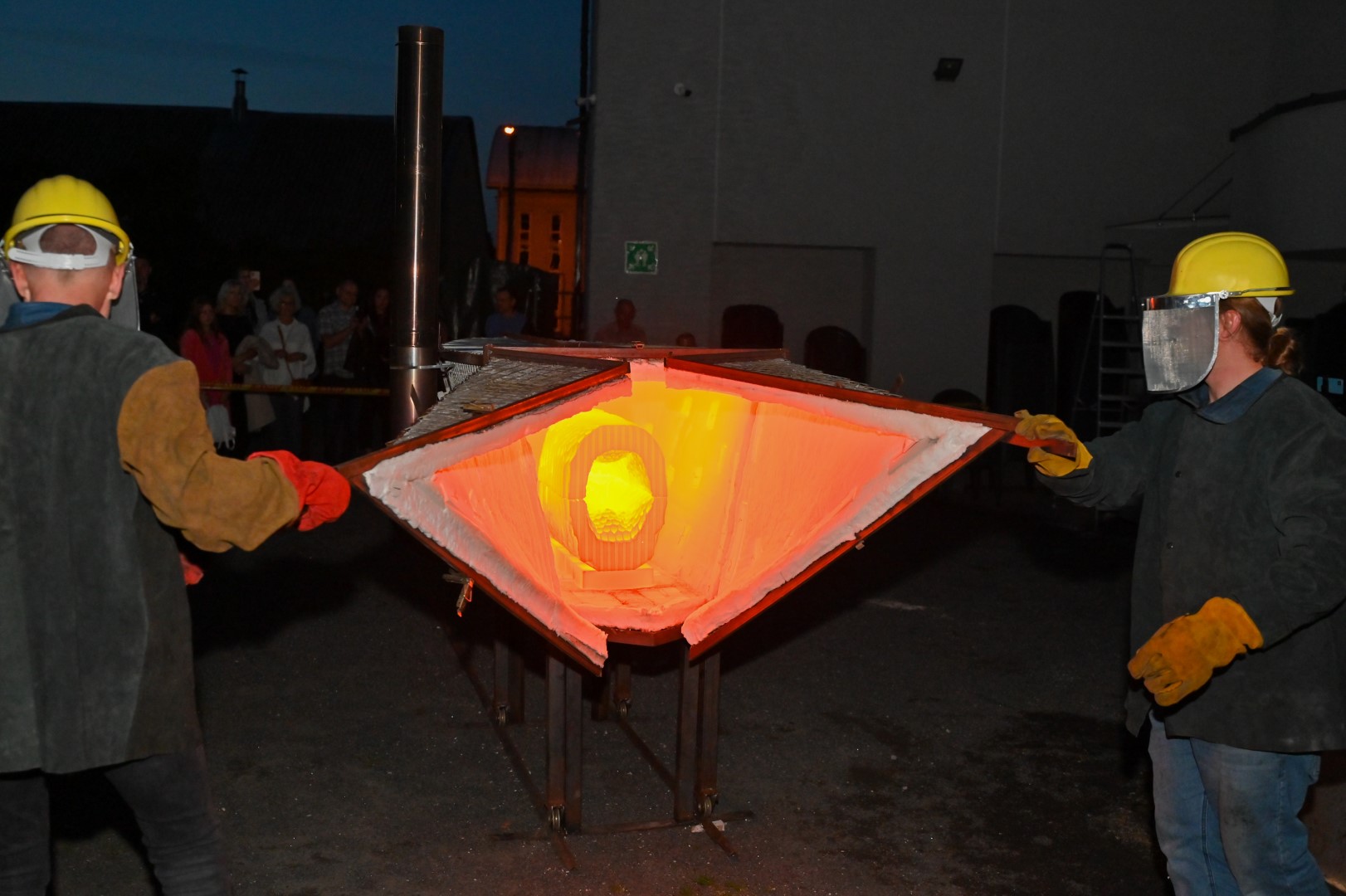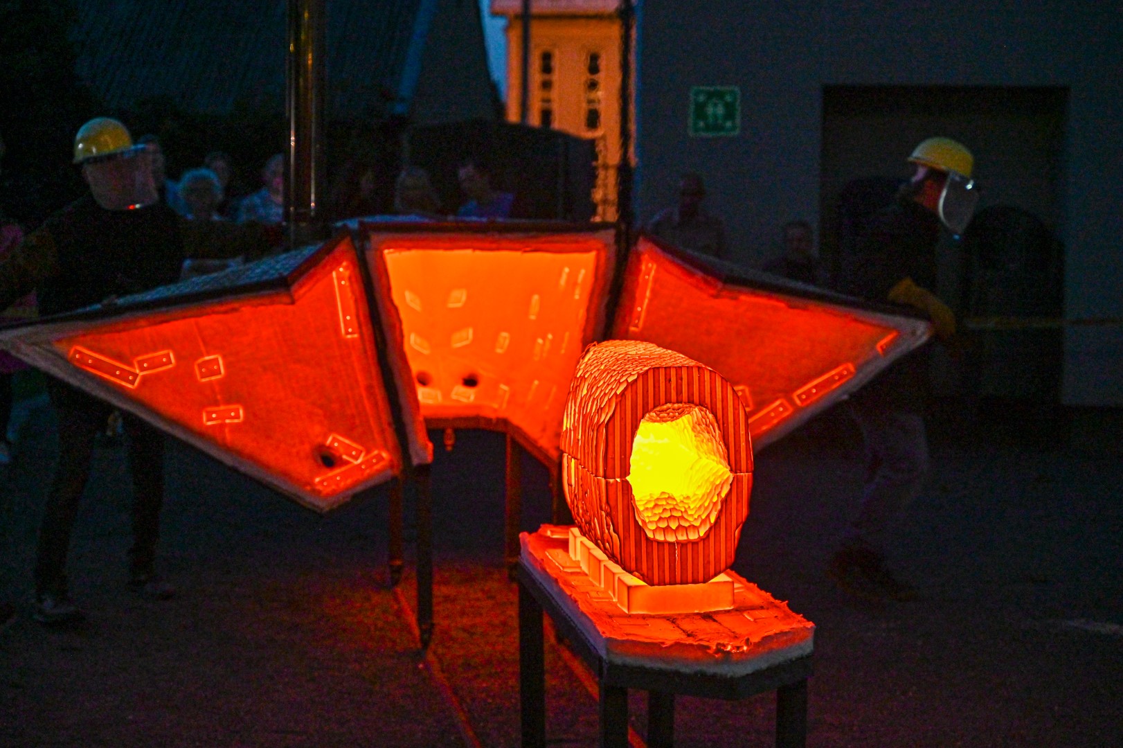 Panevėžio dailės galerijos kiemelyje vyko parodomasis „copper matte“ keramikos degimas.