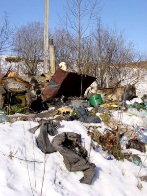 Gaisras kilo viename iš sąvartyno gyventojų suręstame mediniame namelyje, kurie yra kitoje nuo įvažiavimo į sąvartyną pusėje. Vakar jo vietoje riogsojo degėsių krūva, apsilydęs akumuliatorius, styrojo vienišas kaminas. Prie vienos iš likusių penkių lūšnų ambrijo šuo.