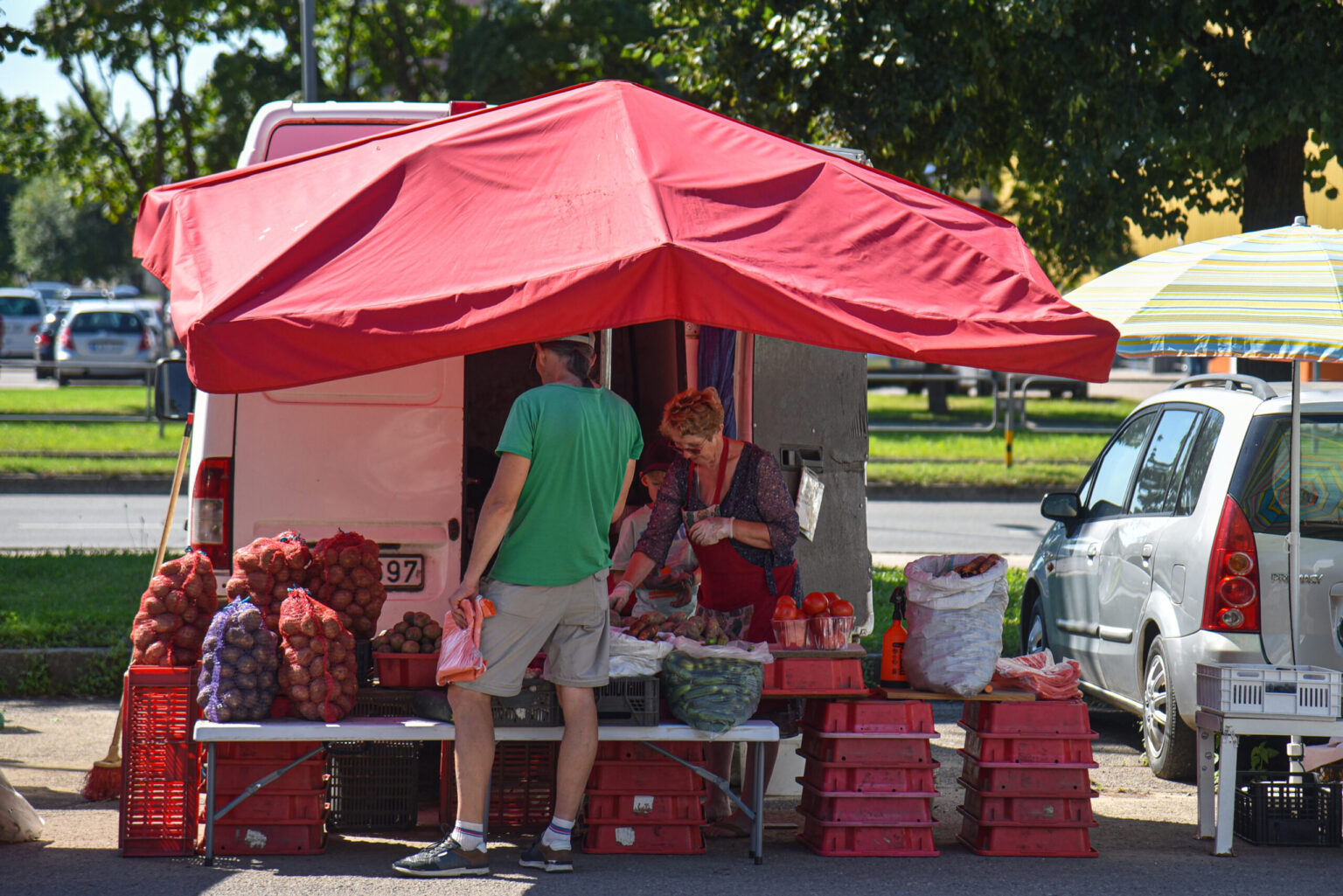 Automobilių aikštelėje įkurtame turgelyje J. Eitmonavičienė prekiauja nuo 2010-ųjų. Ji svarsto, kad pirkėjams čia patogu – gali apsipirkti ne tik ryte, bet ir vakare.