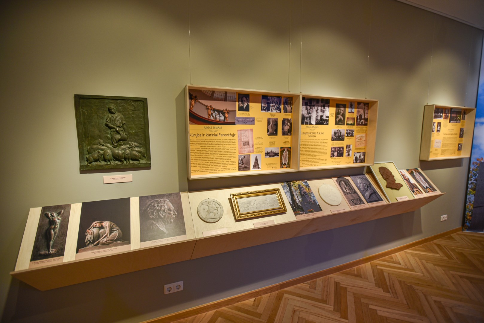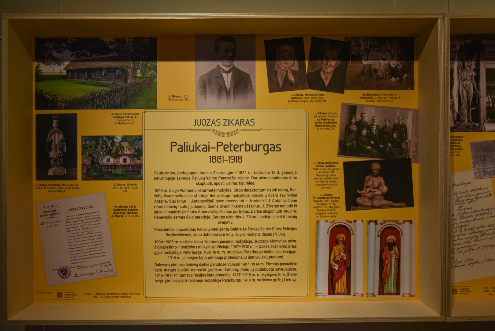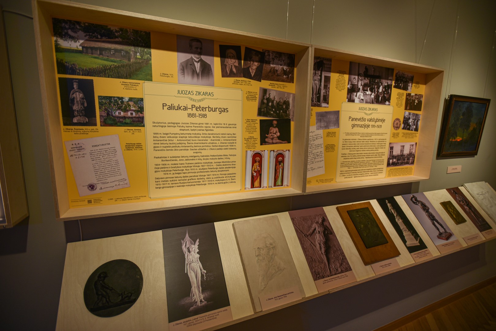 Juozo Zikaro sukurtų skulptūrų, nufotografuotų ir sukabintų ant „Panevėžio“ viešbučio fasado, turbūt bus nepastebėjęs tik retas praeivis. O fotografijose matomų skulptūrų modelius, kaip ir kitus šiam pirmuoju profesionaliu Lietuvos skulptoriumi įvardijamam kūrėjui priklausančius daiktus, galima pamatyti Panevėžio kraštotyros muziejuje įrengtoje improvizuotoje J. Zikaro studijoje.