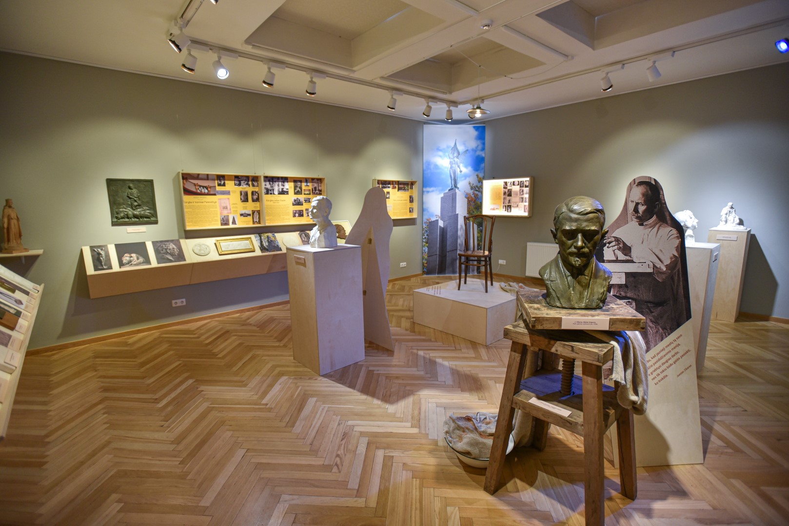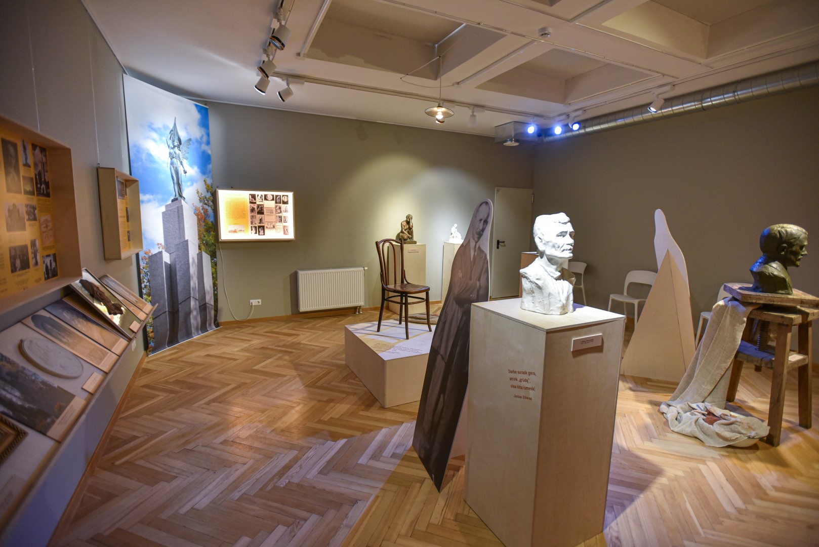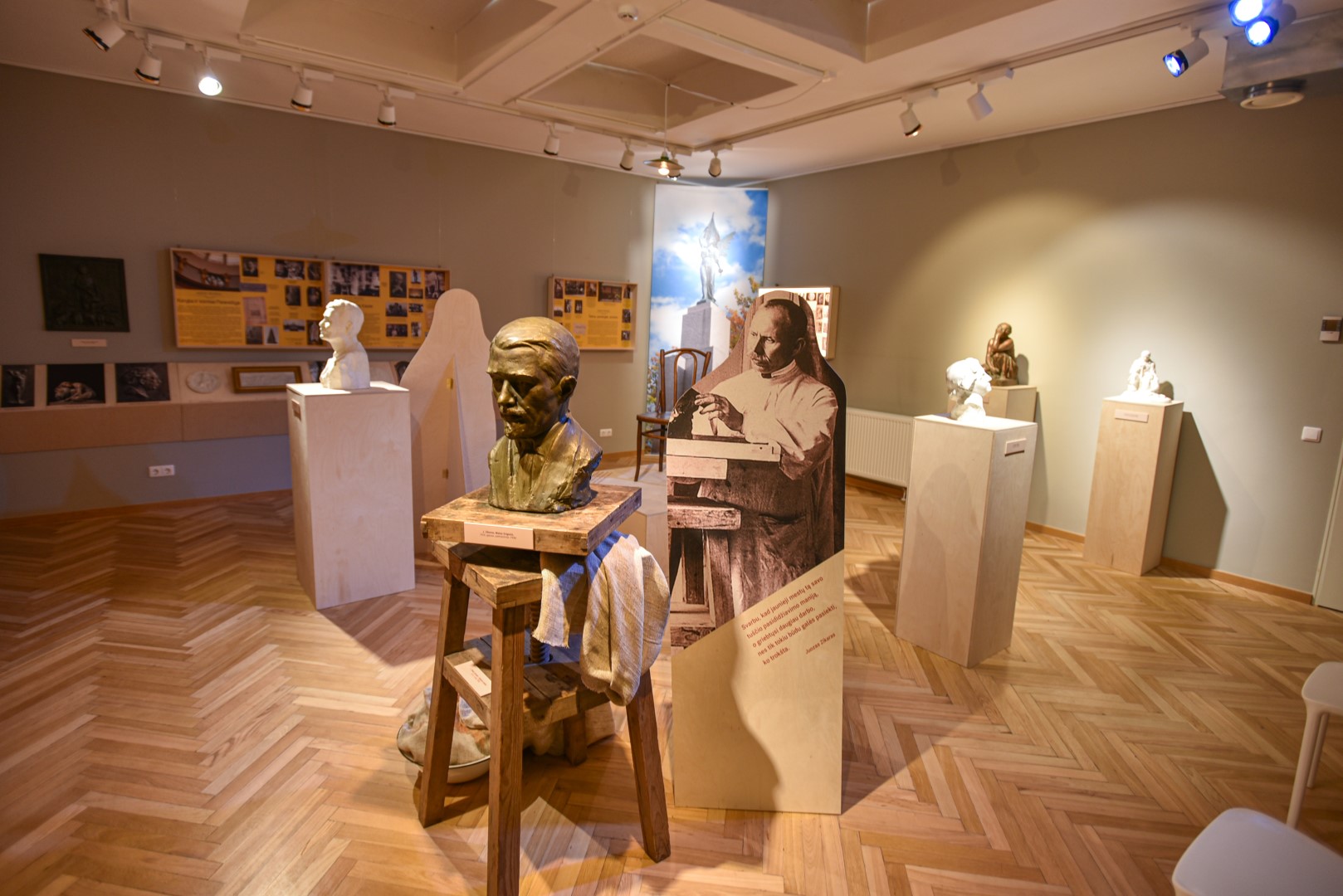 Juozo Zikaro sukurtų skulptūrų, nufotografuotų ir sukabintų ant „Panevėžio“ viešbučio fasado, turbūt bus nepastebėjęs tik retas praeivis. O fotografijose matomų skulptūrų modelius, kaip ir kitus šiam pirmuoju profesionaliu Lietuvos skulptoriumi įvardijamam kūrėjui priklausančius daiktus, galima pamatyti Panevėžio kraštotyros muziejuje įrengtoje improvizuotoje J. Zikaro studijoje.