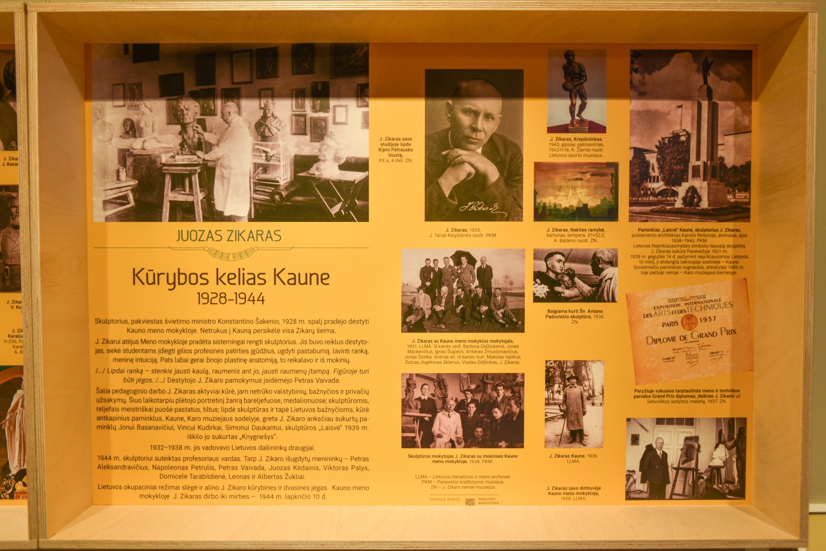 Unikalioje parodoje eksponuojami J. Zikaro skulptūros, tapybos, grafikos darbai, numizmatika, jo darbo stalas-turnetė. Originalūs eksponatai – ne tik iš Panevėžio kraštotyros muziejaus fondų. Specialiai šiai parodai keturis XX a. 3 deš. Panevėžyje sukurtus J. Zikaro dailės kūrinius paskolino Lietuvos nacionalinis dailės muziejus.