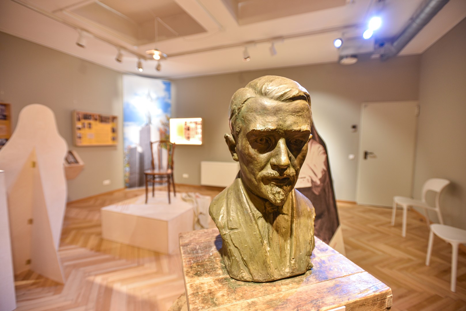 O kaip atrodė kadaise čia stūksojęs J. Zikaro namas, matyti nuotraukoje, eksponuojamoje muziejuje įrengtoje improvizuotoje studijoje. Joje – ir garsiojo menininko sukurtų lietuviškų pinigų – litų ir centų modeliai bei pačios monetos.