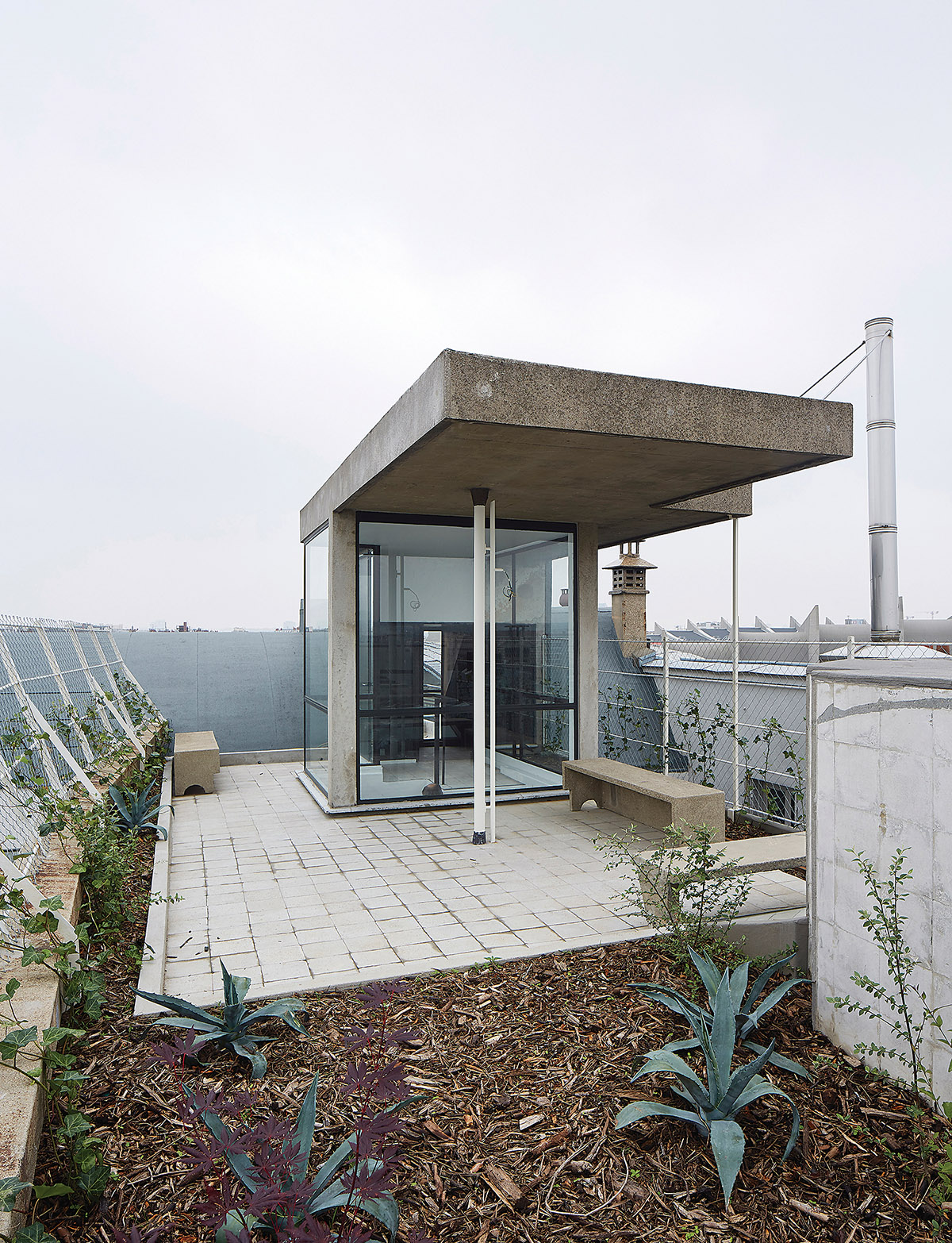 Pastogėje įkurti apartamentai (angl. penthouse) užima 240 m2 – tai tikra antitezė įprastiniams paryžietiškiems kambariukams. Juos sudaro net keturios dalys: kūrybinė studija, gyvenamosios erdvės, svečių kambarys ir sodas ant stogo. Le Corbusier stengėsi realizuoti asmeninius kūrybos principus, butą ne kartą perkūrė ir modifikavo, kad priartintų jį prie tobulybės ir padarytų dar jaukesnį savo žmonai Yvonne, su kuria čia gyveno ne vieną dešimtmetį.