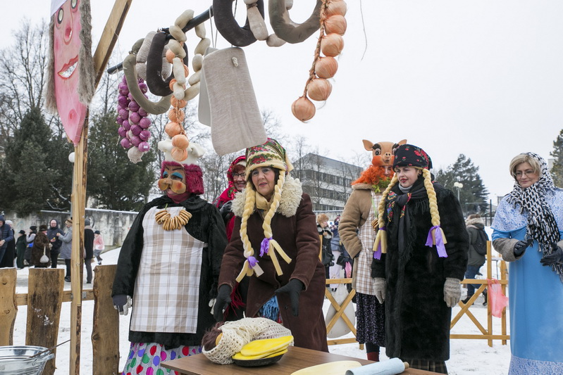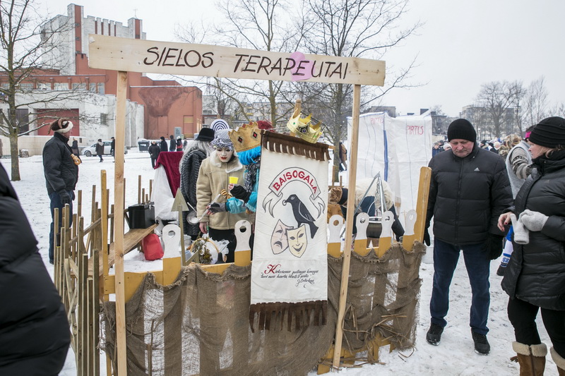 Visa triukšminga eisena, nešina Užgavėnių simboliu More, ilgesniam laikui apsistojo prie Bendruomenių rūmų. Čia šventės dalyvių laukė mugė, skanėstais viliojo gaspadinių ūlyčia.