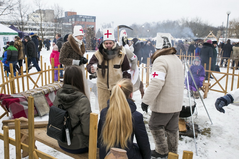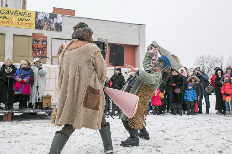 Su dviem vaikais į šventę atėjusi Giedrė ir jos vyras Aurimas kalbėjo, kad pirmą kartą savo mažylius atvedė pažiūrėti lietuviško žiemos šventės. Ilgai užsibūti kaukių „puotoje“ šeima nežadėjo, po parado tėvai vaikus paleido pačiaužyti rogutėmis.