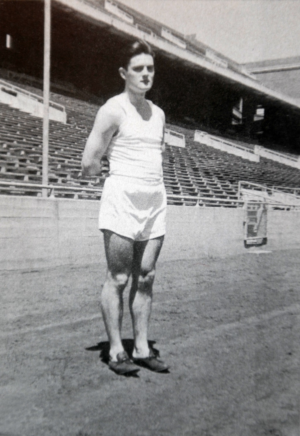 Vietoje įprastų sprinto starto kaladėlių – iškasta duobė. Vietoje guminės stadiono dangos – šlakas. Tvirtai sudėtas tamsiaplaukis jaunuolis, nepaisant dabartiniams sportininkams sunkiai įsivaizduojamų sąlygų, stadiono taku skrieja tarsi žaibas.