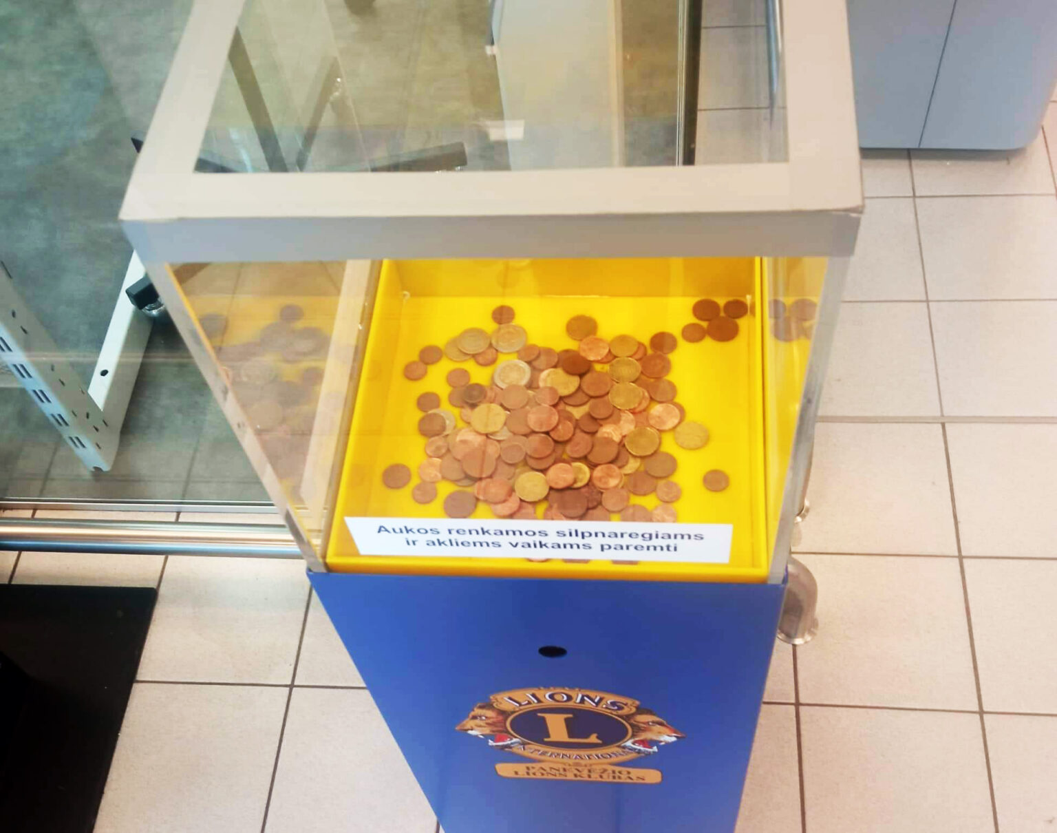 Kiek dėžutėje buvo surinkta pinigų, nežinia. Aukų dėžutės prekybos centruose atsirado tik šiemet, jos buvo ištuštinamos kas savaitę.