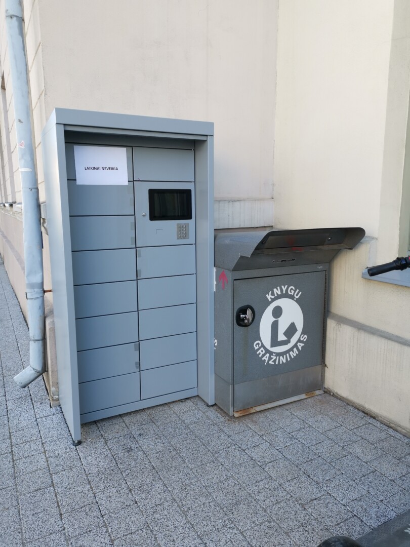 Šalia knygomato stovi ir speciali dėžė knygoms grąžinti, tačiau ji įsilaužėlių liko nepaliesta.