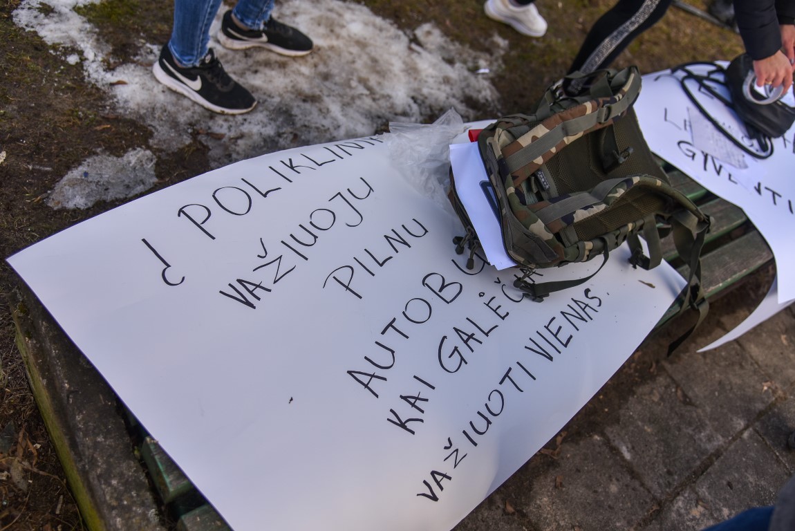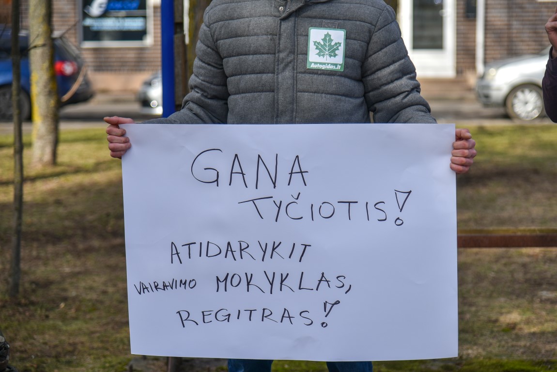 Šešių Panevėžyje veikiančių vairavimo mokyklų instruktoriai ir vadovai po daugiau nei poros mėnesių pertraukos trečiadienį išvarė iš garažų mokomuosius automobilius ir patraukė į miesto centrą. Sausio 13-osios skvere iškėlę plakatus jų jau laukė bene dvi dešimtys teisės vairuoti siekiančių žmonių su paspirtukais, prekybos centro vežimėliais – priemonėmis, kurias jie kol kas tegali vairuoti.
