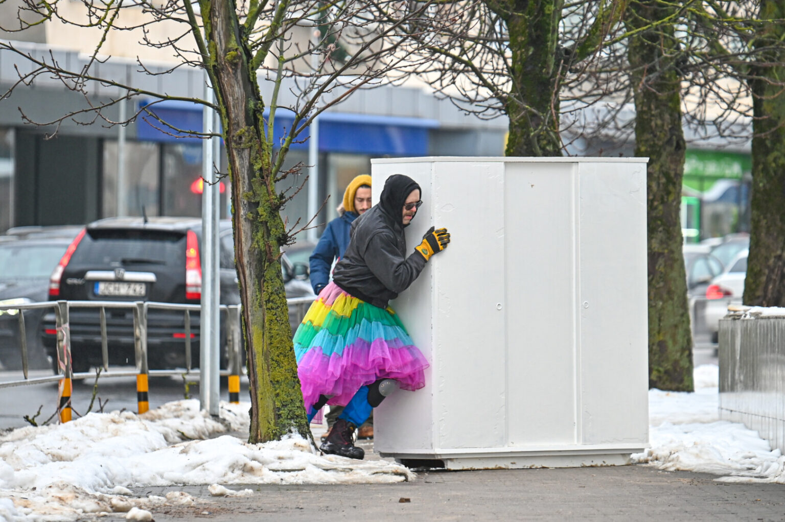 Lygiai prieš metus nuo Nepriklausomybės aikštės iki „Stasys Museum“ trejų durų spintą nutempęs ir ją vaivorykštės spalvomis nudažęs Saulius Leonavičius planuoja naują pasirodymą.