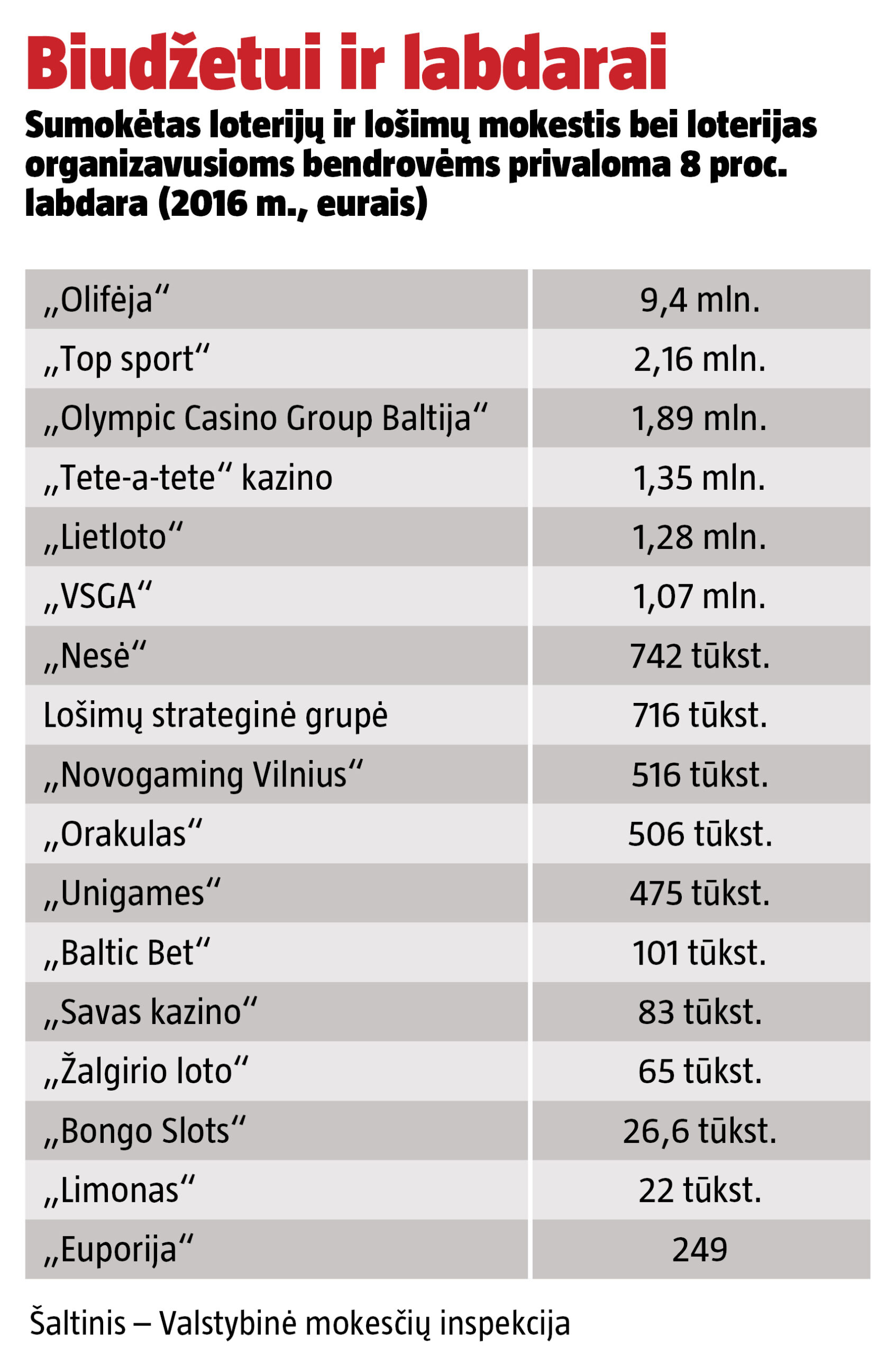 Lietuvos lošimų versle susiduria įvairių interesų, o jiems ginti finansinės motyvacijos taip pat netrūksta. 2016 m. sektoriaus apyvarta siekė 770 mln. eurų, bendrosios pajamos, atskaičius išmokėtus laimėjimus (GGR), – 90 mln. eurų.