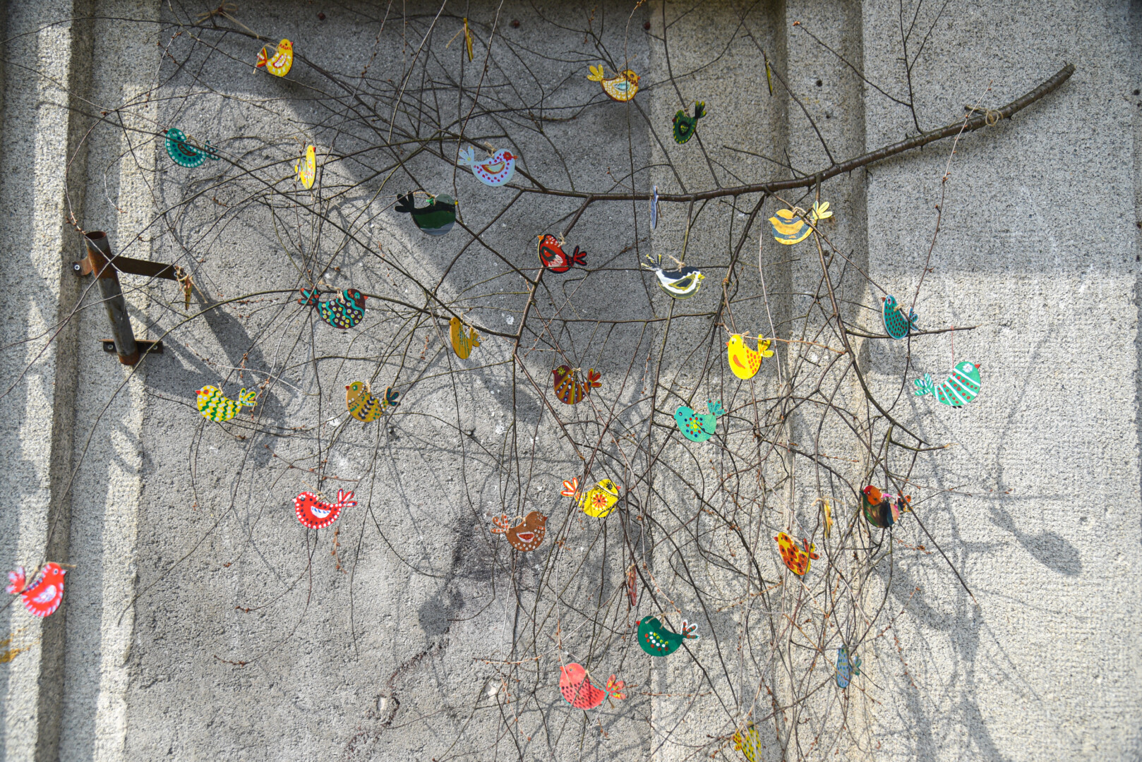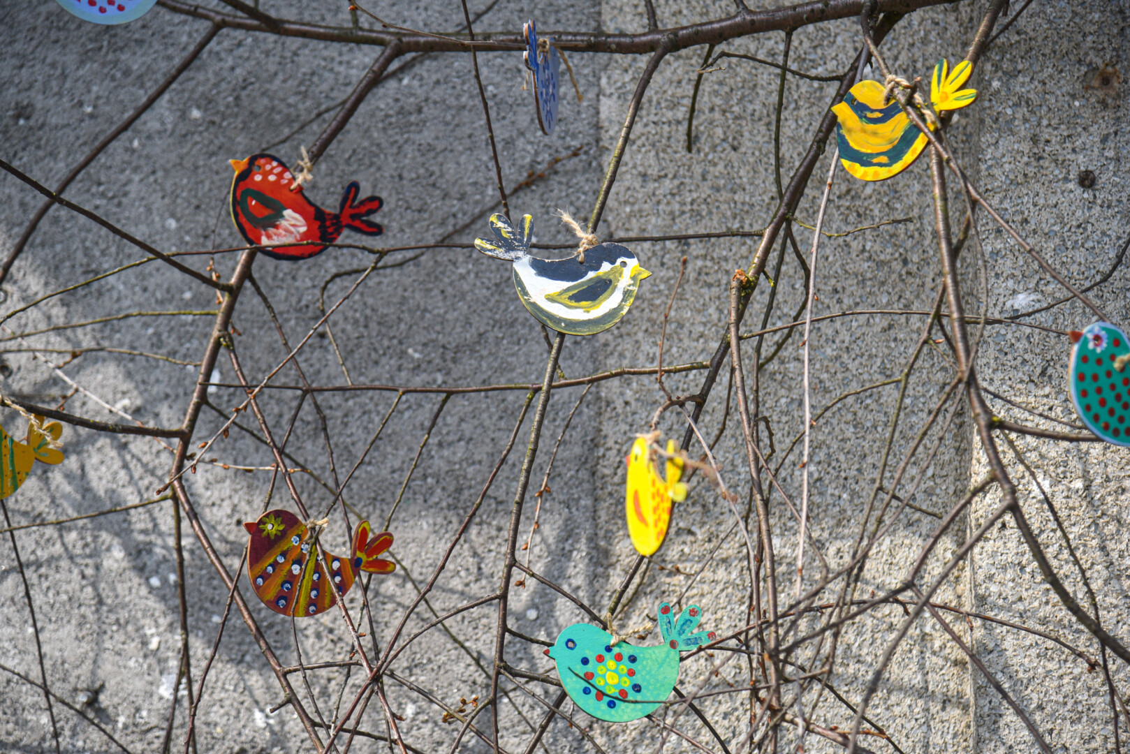 Dabar ją ne tik puošia kūrybingų perekšliečių rankomis kurti įvairiaspalviai paukščiai.