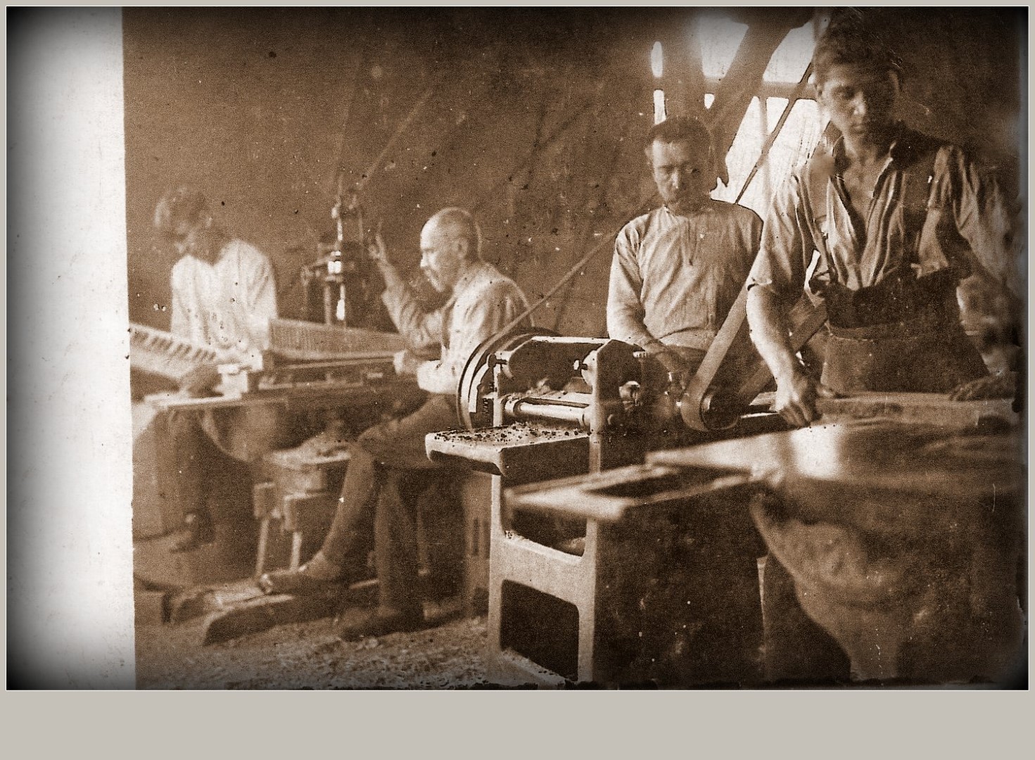 Martynas Masalskis savo vargonų dirbtuvėje Donelaičio gatvėje. XX a. 4 dešimtmetį. Panevėžio kraštotyros muziejaus nuotr.