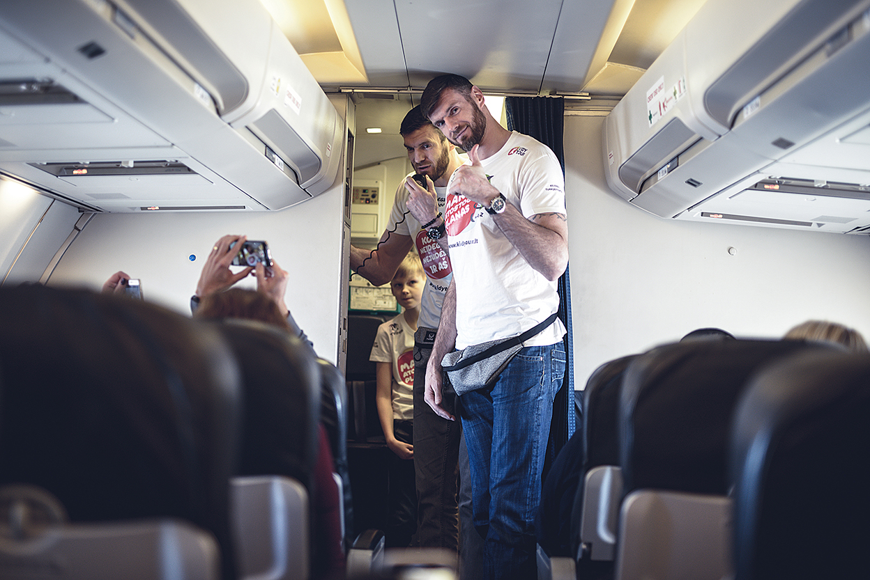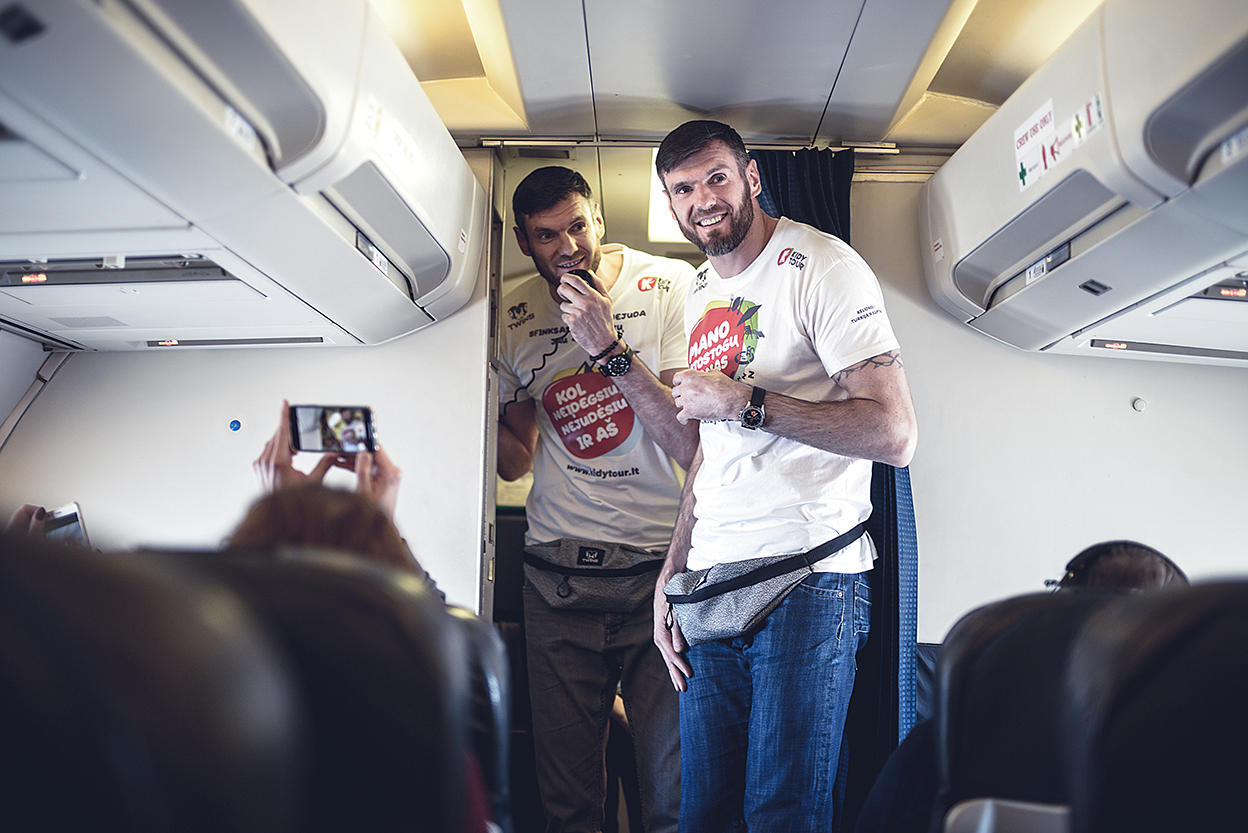 Be išskirtinių komentarų ir trijų reklaminių klipų, skirtų televizijos ekranams, filmavimo, broliai taip pat žada palinksminti ir su jais keliaujančius tautiečius. Pirmasis siurprizas laukė dar lėktuve, kai vos pakilus lėktuvui Darjušas su Kšištofu patraukė prie mikrofono. Sveikindami visus su Lietuvos valstybės atkūrimo diena broliai tikino, kad šio lėktuvo keleiviai turi svarbią misiją – parvežti Lietuvai pavasarį. Broliai taip pat informavo keleivius apie oro temperatūrą Hurgados oro uoste, įspūdingiausias Egipto vietas ir ką galima ten nuveikti.