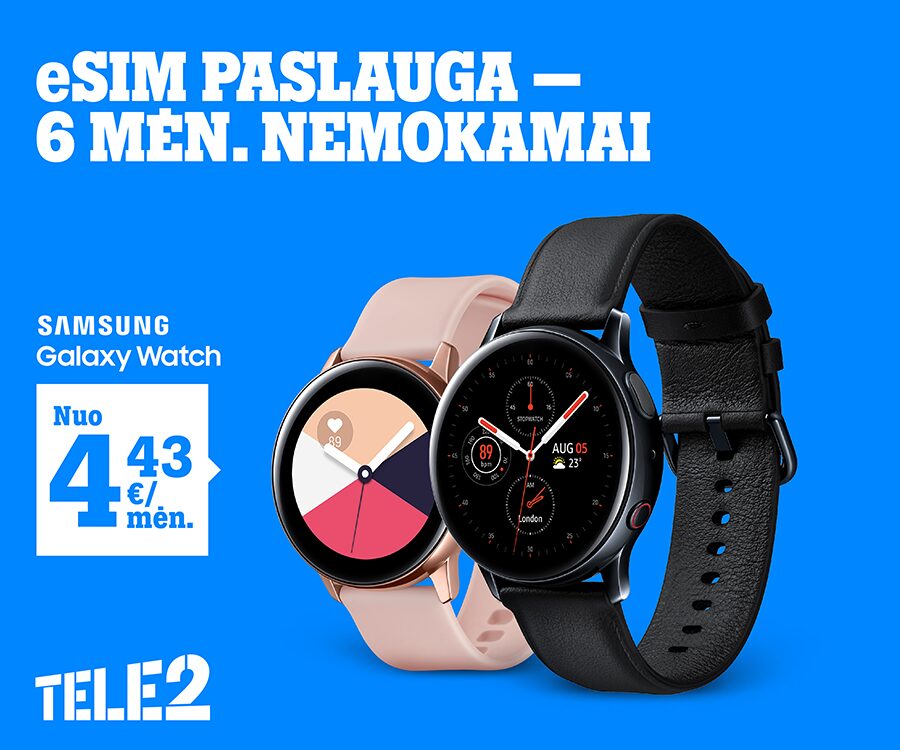 Ieškantiems išmaniojo laikrodžio su eSIM technologija, naujo telefono ar planšetinio kompiuterio – geros naujienos.  „Tele2“ paruošė daugybę puikių pasiūlymų, kuriais jau dabar galite pasinaudoti operatoriaus fiziniuose salonuose arba internetinėje parduotuvėje www.tele2.lt.