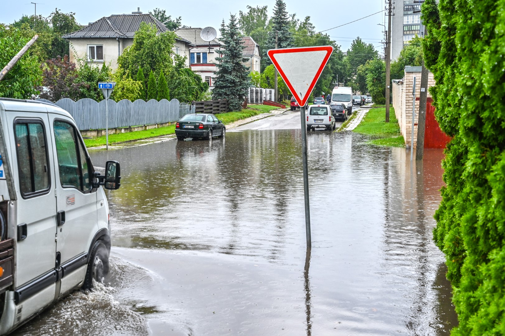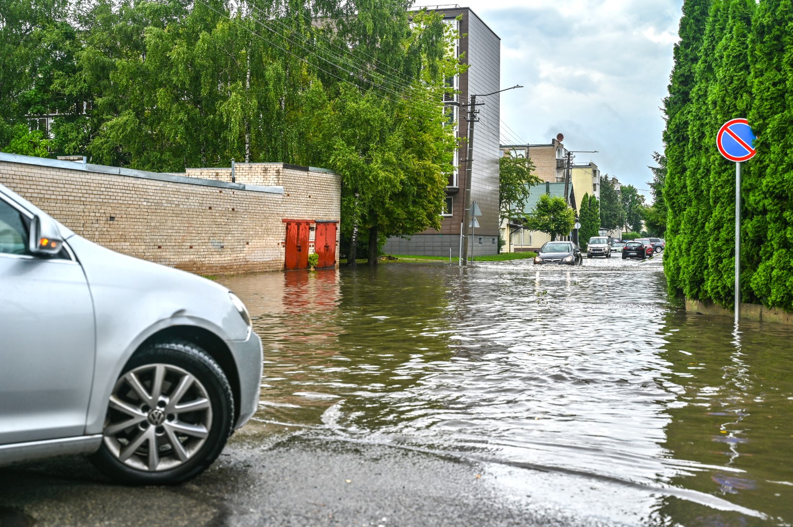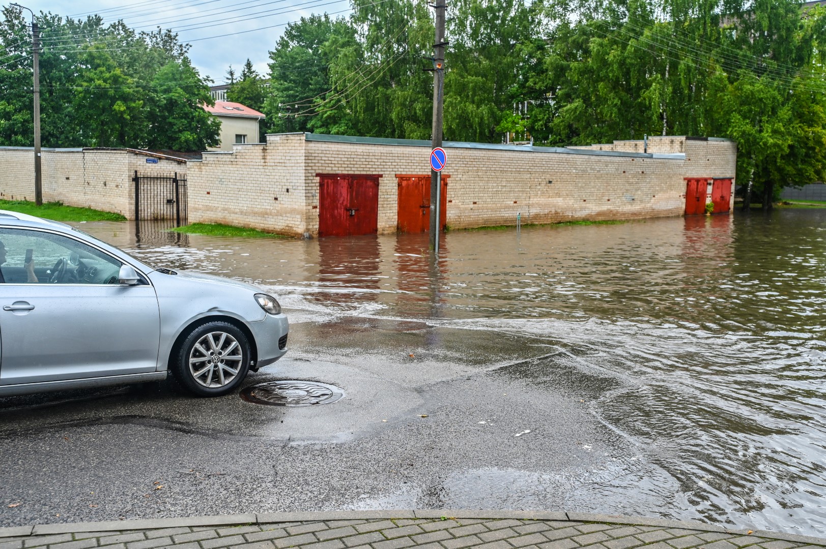 Kelioms stiprioms liūtims nuskalavus Panevėžį, popiet kai kurios gatvės užtvino taip, kad nepraeisi ir sunkiai pravažiuosi.