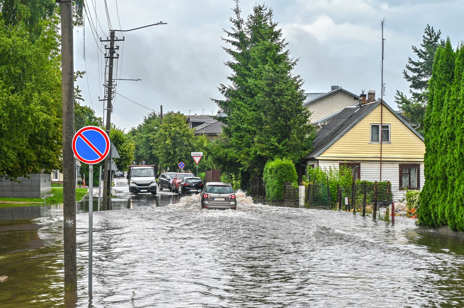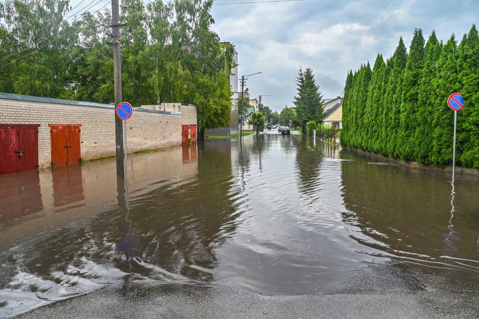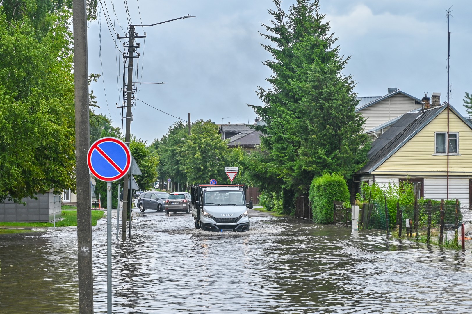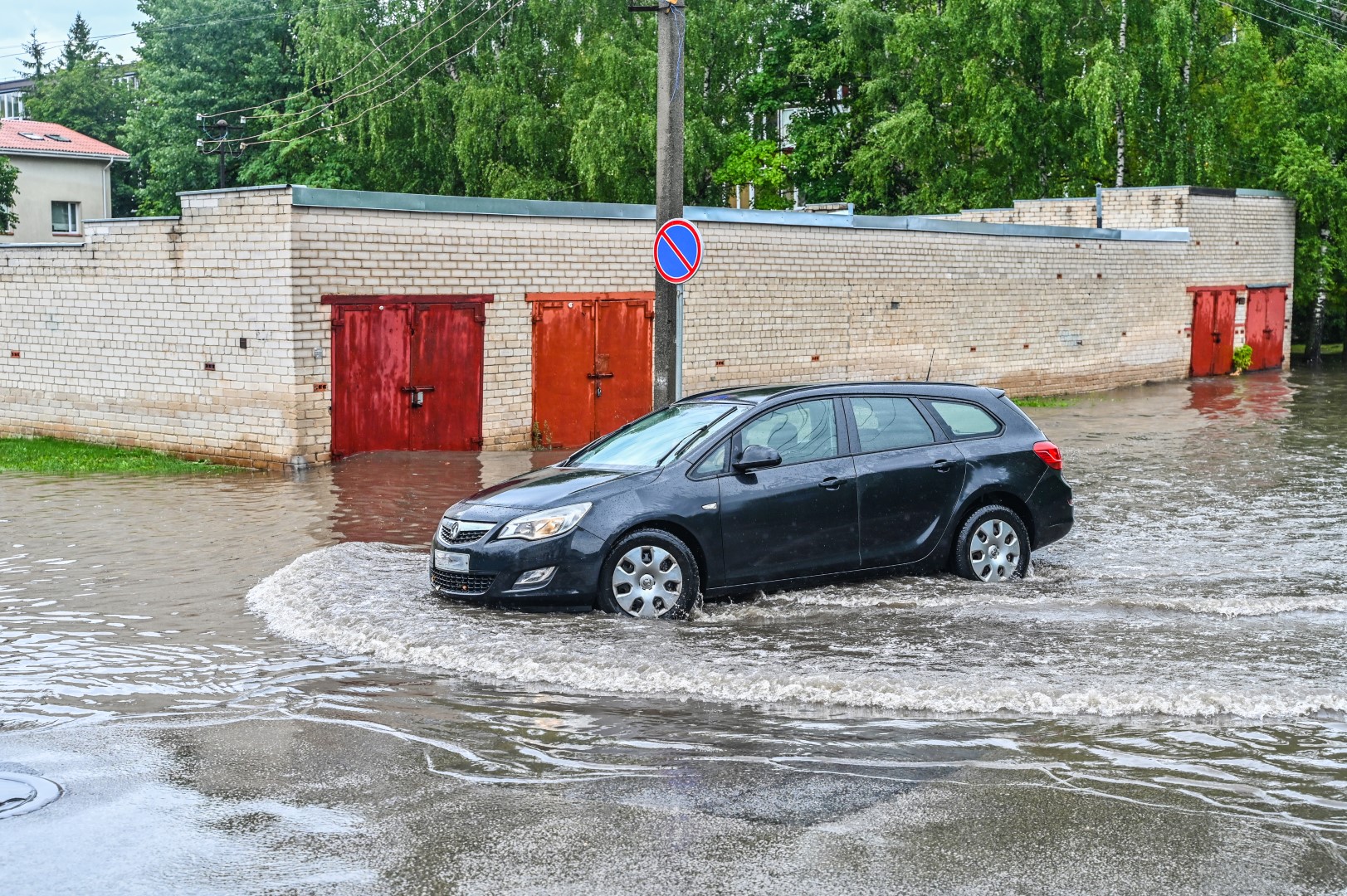Kelioms stiprioms liūtims nuskalavus Panevėžį, popiet kai kurios gatvės užtvino taip, kad nepraeisi ir sunkiai pravažiuosi.