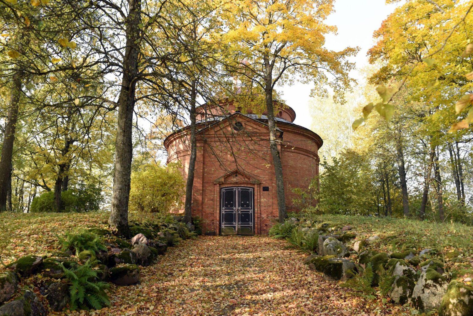 Gaila, kad iš kadaise šiose vietose klestėjusio dvaro likęs tik šis apvalus raudonų plytų pastatas – mauzoliejus.