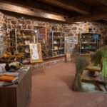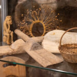 Trečiame dėmesys skiriamas seniesiems liaudies buities įrankiams bei reikmenims, kurie naudoti XIX amžiaus Lietuvoje, stovi verpimo rateliai, audimo staklės.