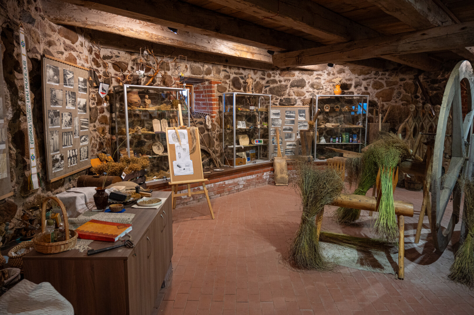 Linų muziejaus ekspozicija gausi. Ją sudaro senoviniai etnografiniai bei tautodailės eksponatai.