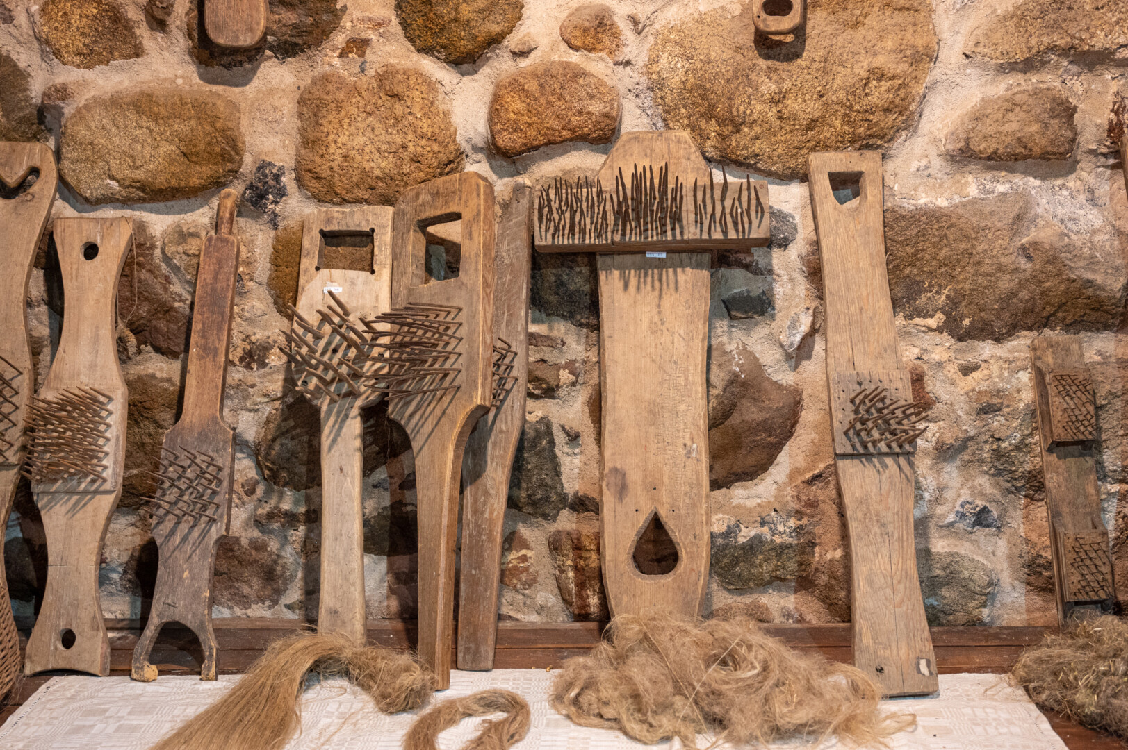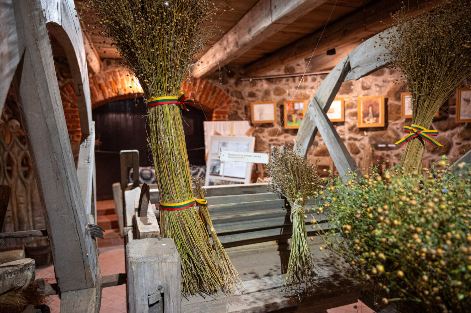 Pirmame aukšte galima apžiūrėti lino apdirbimo įrankius, bene labiausiai dominančius jauniausius ekskursijų dalyvius.