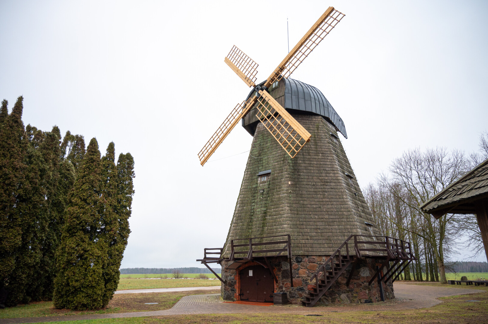 Pats malūnas – keturių aukštų išvaizdus pastatas su pasukama prieš vėją kepure.