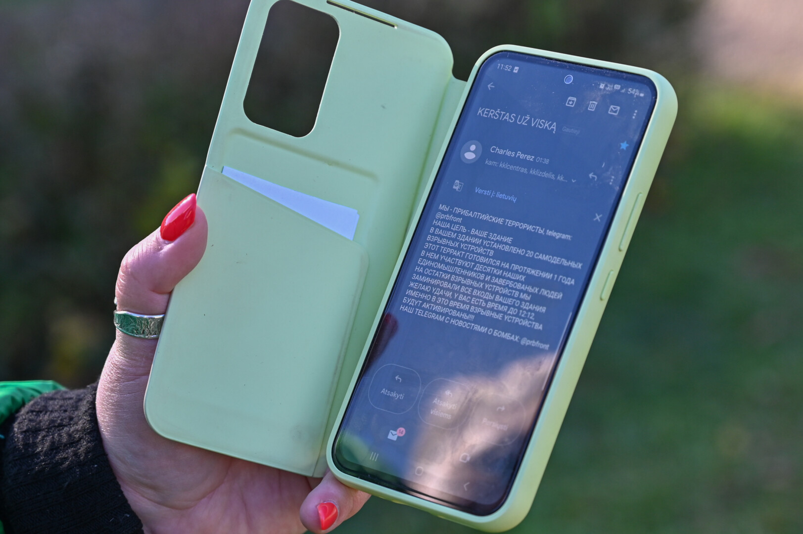 „Laiške rašoma, kad mūsų įstaiga užminuota 20-čia užtaisų, kad išpuoliui ruoštasi ištisus metus, o sprogimai prasidės pirmadienį 12.12 val. Kadangi Švietimo, mokslo ir sporto ministerija, ir policija daug informacijos kaip elgtis pateikė dar penktadienį, reagavome gana ramiai“, – teigė direktorė.