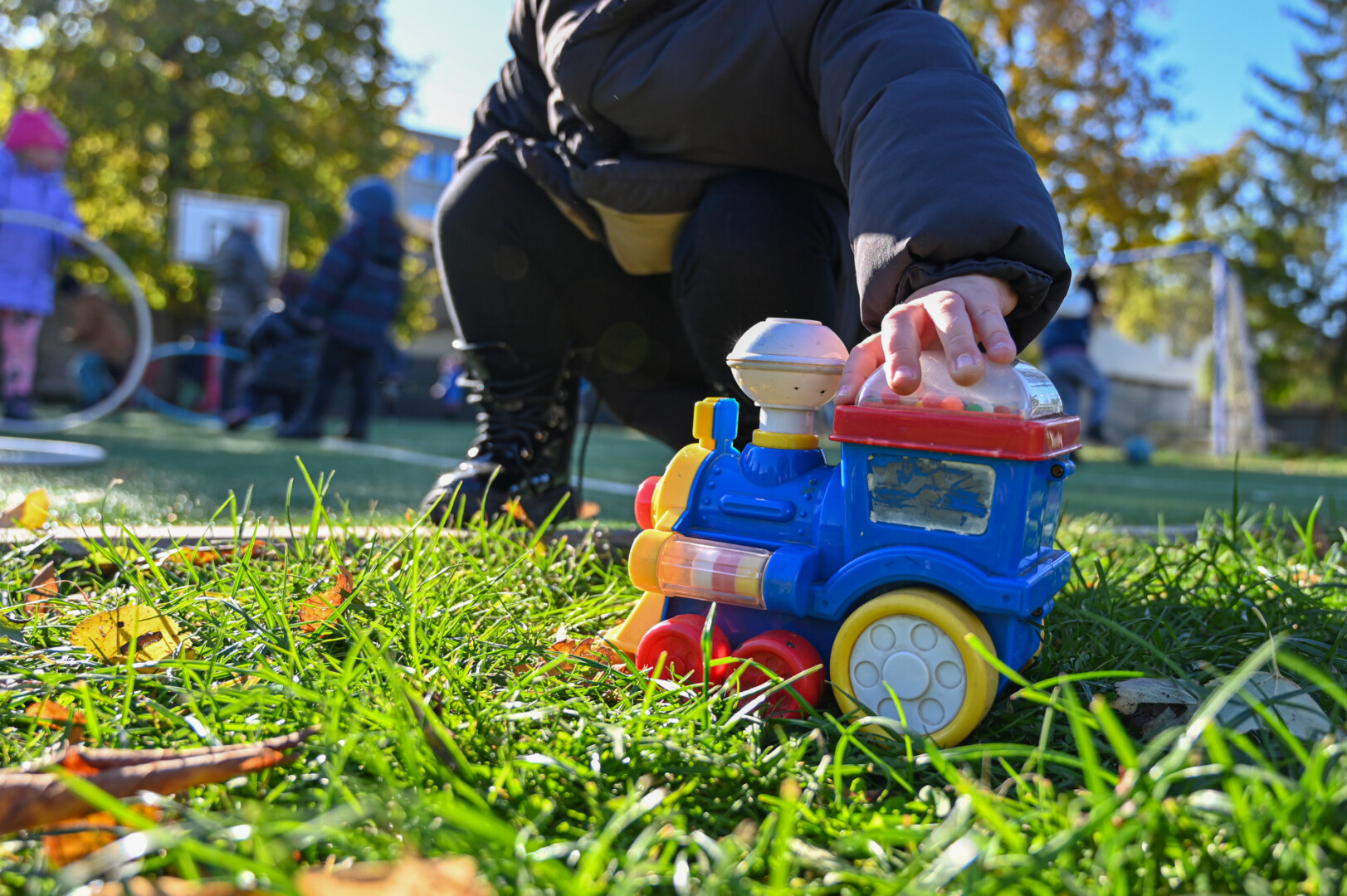 Visgi po vienuoliktos maždaug porai valandų visi vaikai išvesti iš pastato pažaisti lauke.