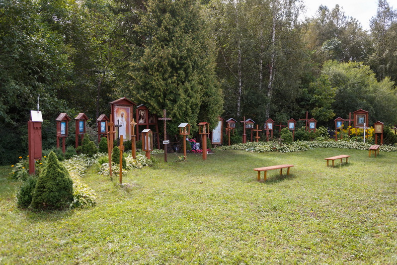 Nuo Velykių Šv. Andriejaus bažnyčios beveik dešimt kilometrų nutolusi Marijos apsireiškimo vieta pasitinka kryžiais, statulėlėmis, paveikslais, gėlių žiedais ir būreliu aplinką čia tvarkančių panevėžiečių – Gyvojo Rožinio būrelio narių.
