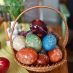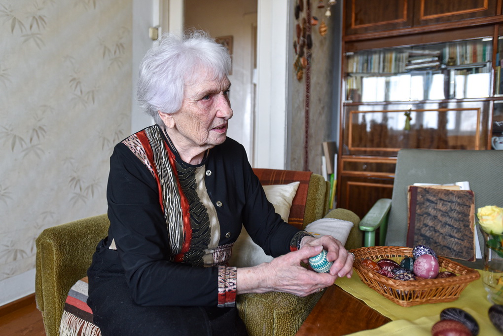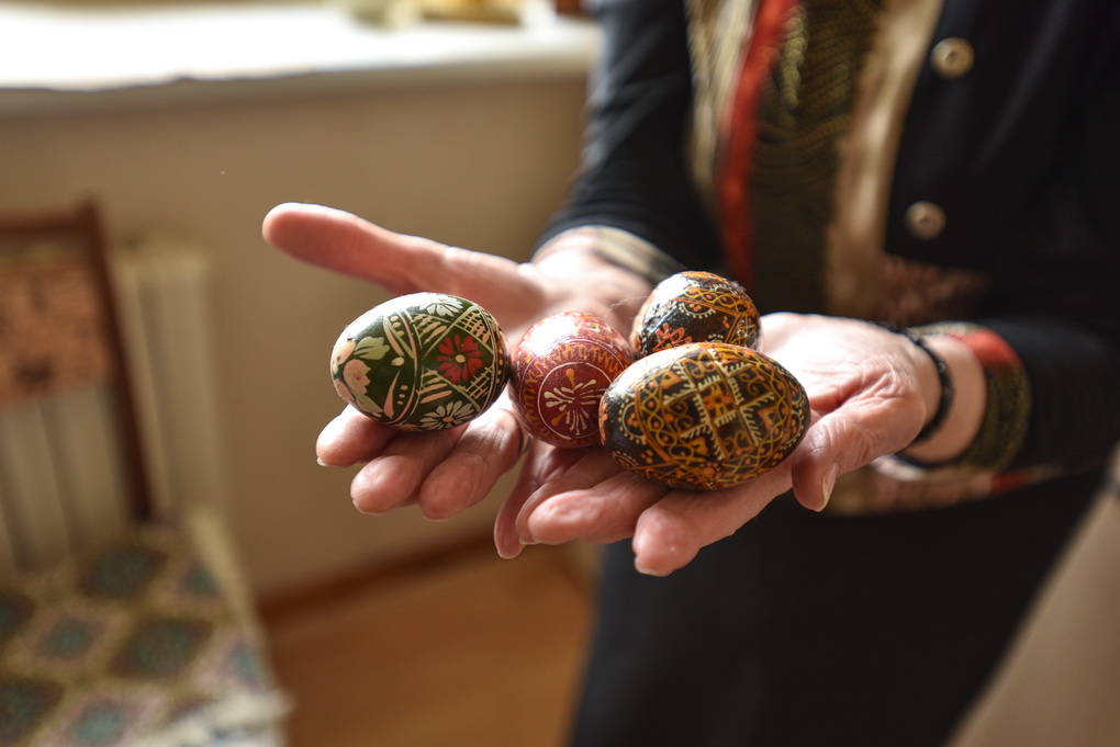 Į devintą dešimtį kopianti panevėžietė Birutė Daunoravičienė gražiausiai pavasario šventei pradeda ruoštis prieš gerą savaitę – sukauptą įspūdingų margučių kolekciją papildo naujai išskutinėti tarsi kosminiai meno kūriniai.