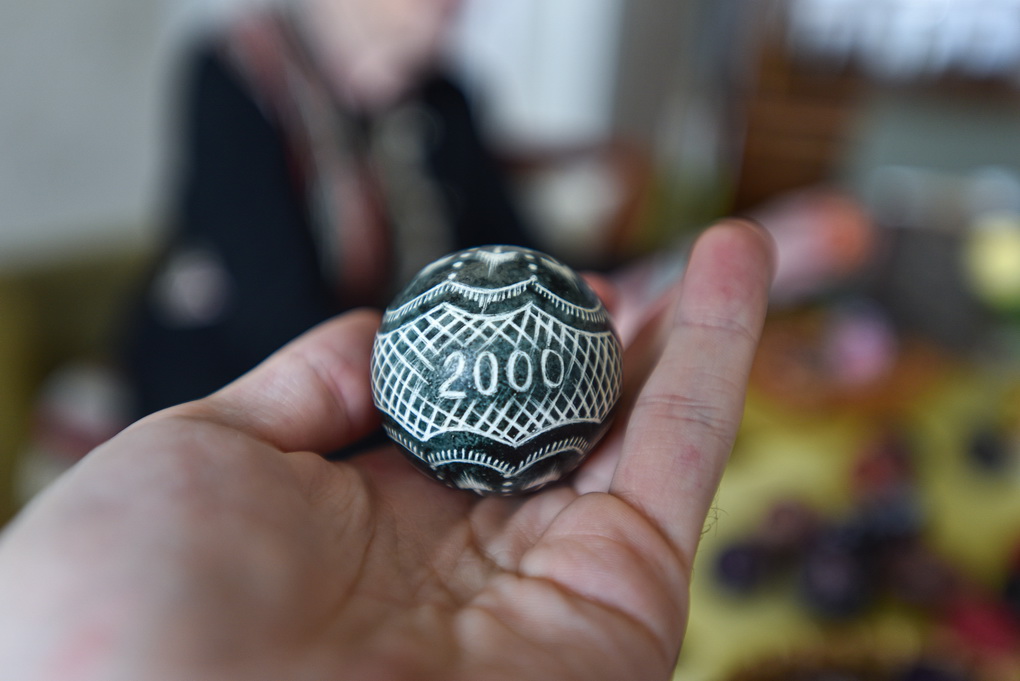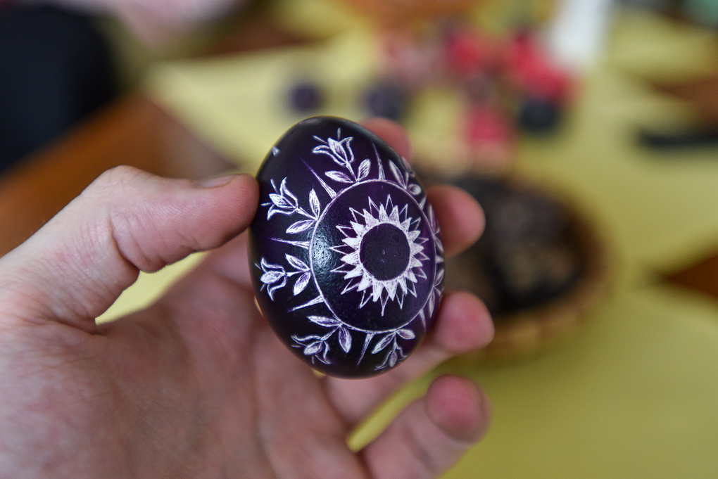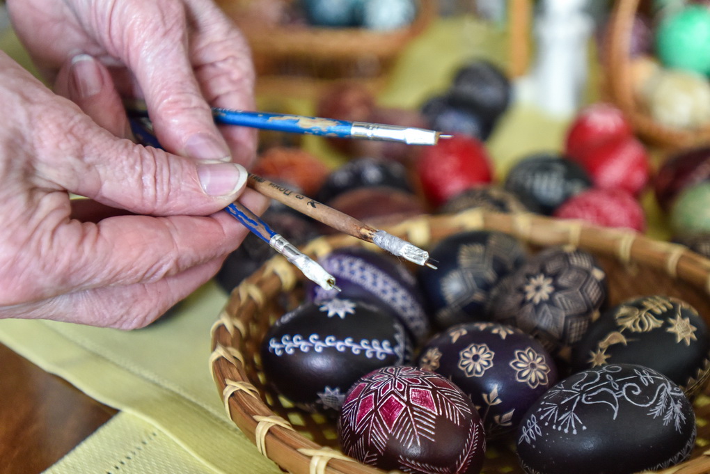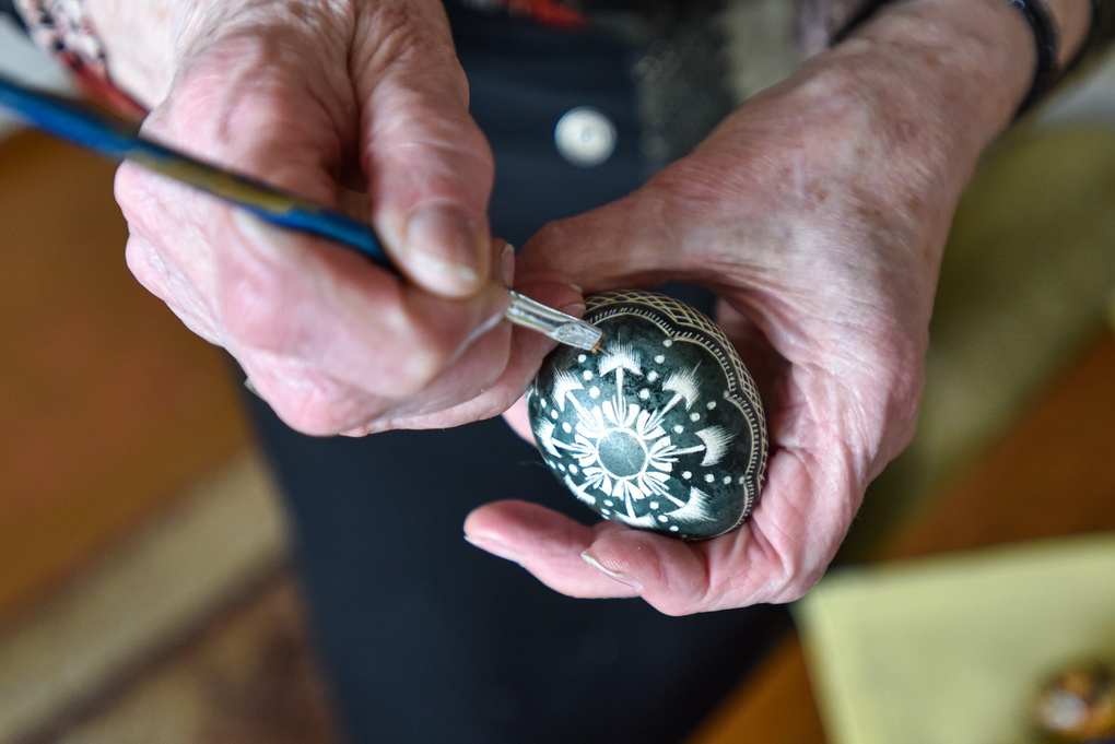 Kiaušinių margintoja atvirauja, kad darbavimasis gremžtuku ant nudažyto kiaušinio jai – tarsi meditacija, kai ištirpsta laikas, o mintys išskaidrėja.