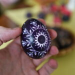 Tuomet reikia pamerkti į dažus – svarbu, kad kiaušinio ir dažų temperatūra labai nesiskirtų, nes antraip lukštas suskeldės.