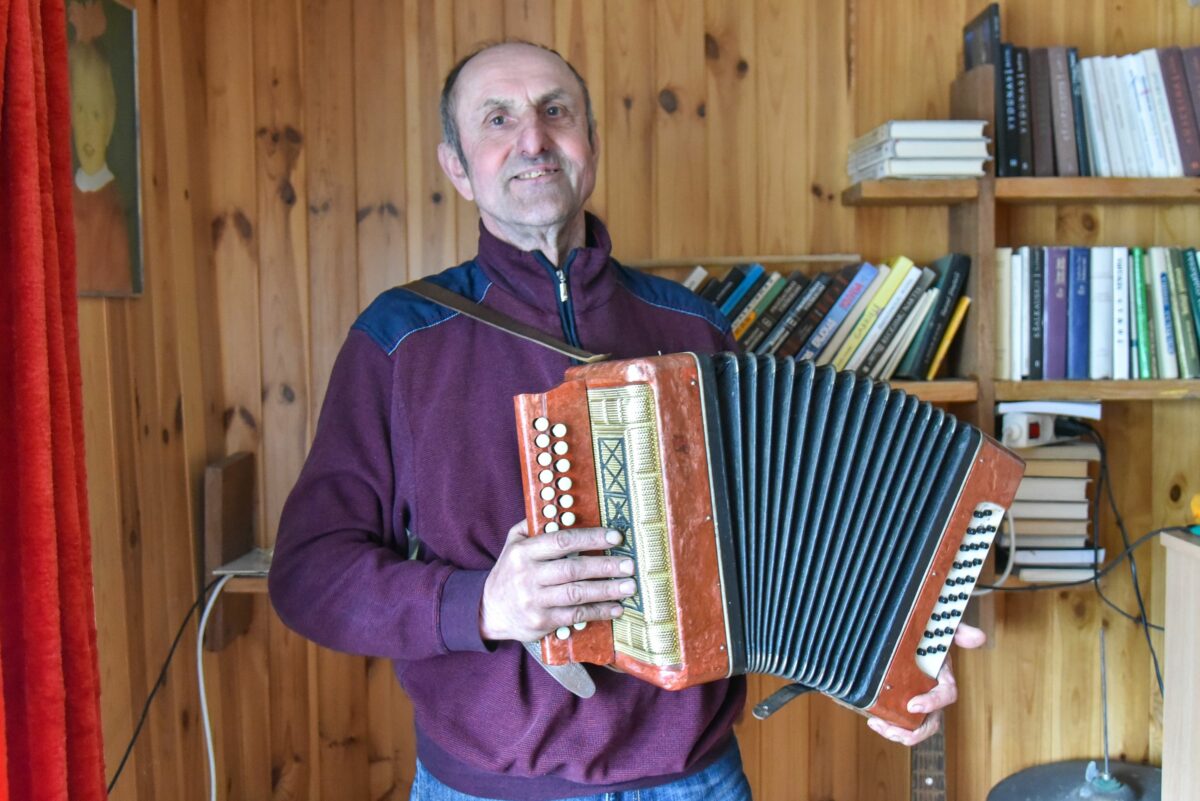 Panevėžietis treji metai priklauso kaimo kapelai „Šmaikšts“ ir čia virkdo savo armoniką.