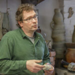 „Nuo kiaušinio prasideda ir mano kūryba“, – ant žiedimo staklių paruoštą molio gabalą meta pašnekovas ir pirštais pradeda juo „groti“: spausti, po truputį formuoti.