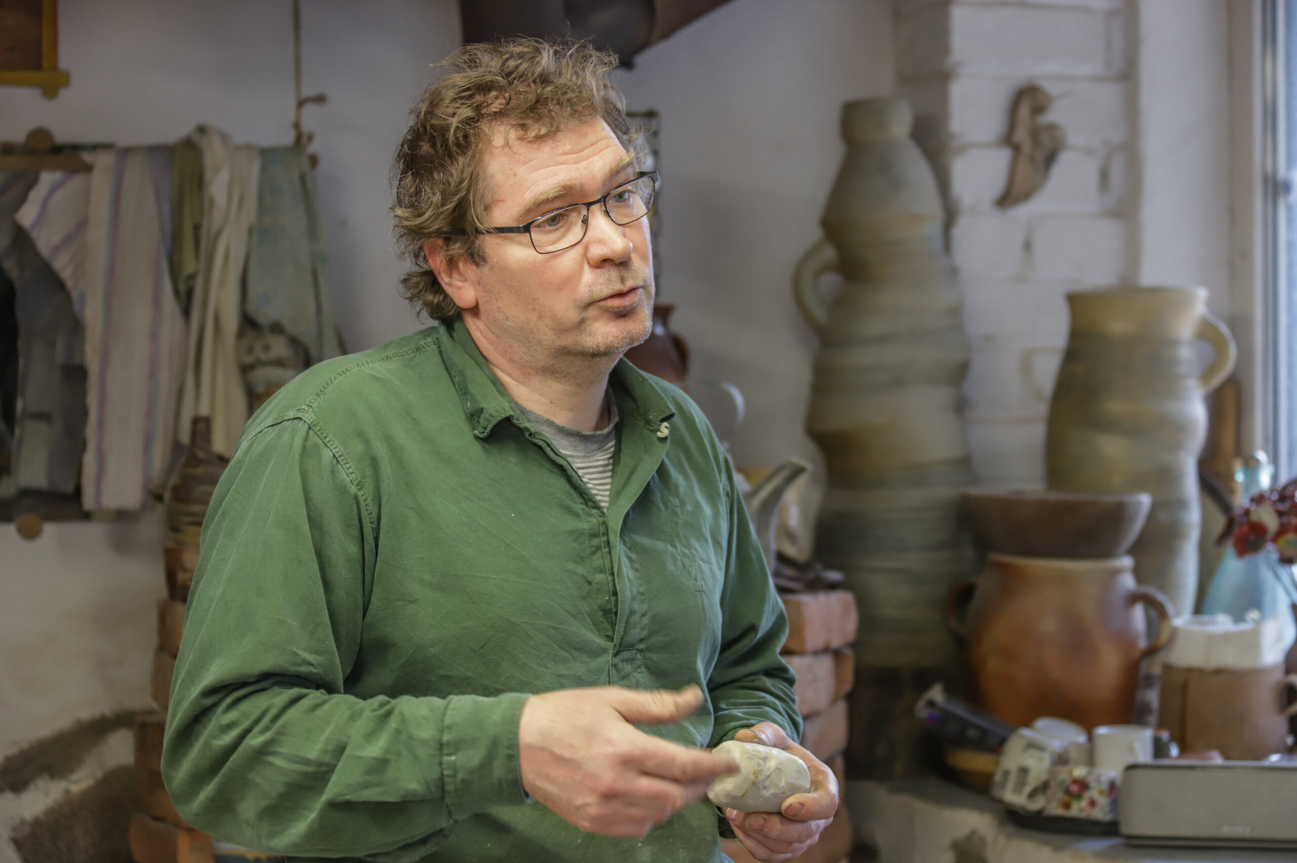 „Pavėluotai radau molį – jei kas ir sako, kad tokiems dalykams amžius nesvarbu, tai taip nėra. Man tenka visko išmokti labai greitai, nes laiko tiek nebeturiu, kiek turi vaikas ar jaunuolis“, – sako penkiasdešimtmetis puodžius.