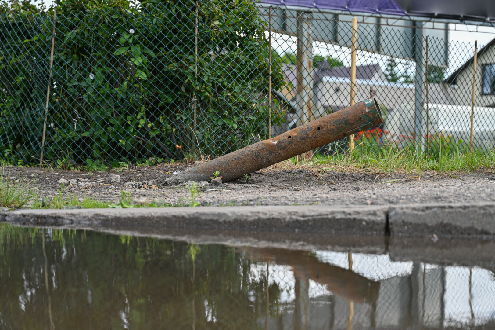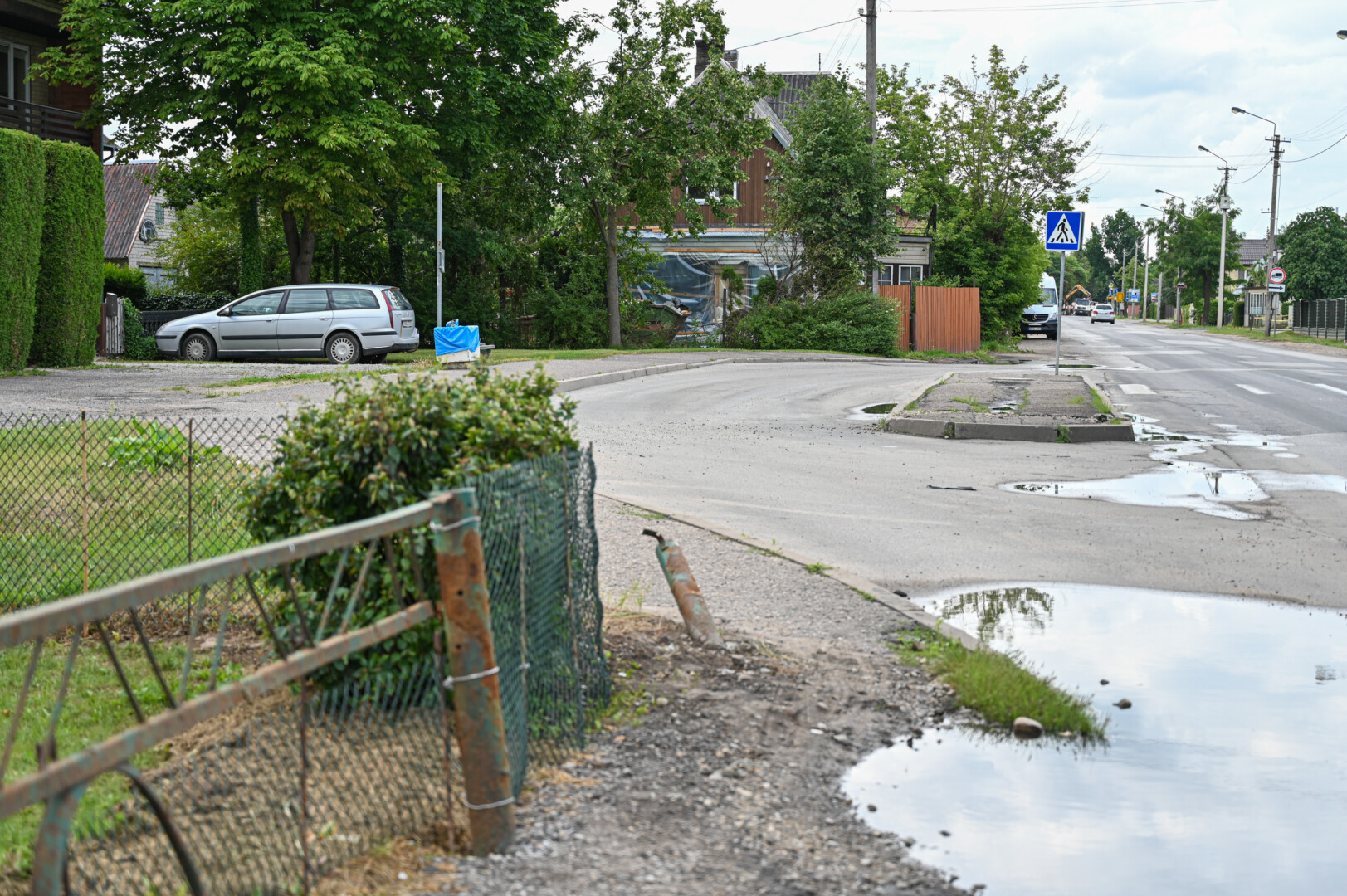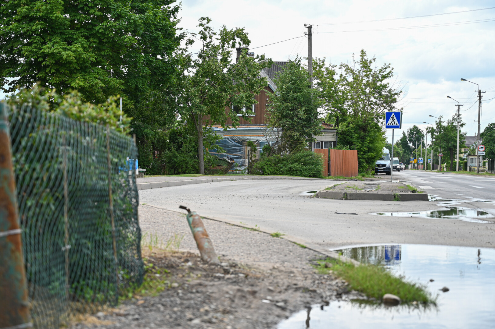 Netruks sueiti keturi mėnesiai, kai Smėlynės gatve važiavęs vilkikas, nuvertęs privatų sklypą juosusią metalinę tvorą, įsirėžė į kaimyninio namo sieną.