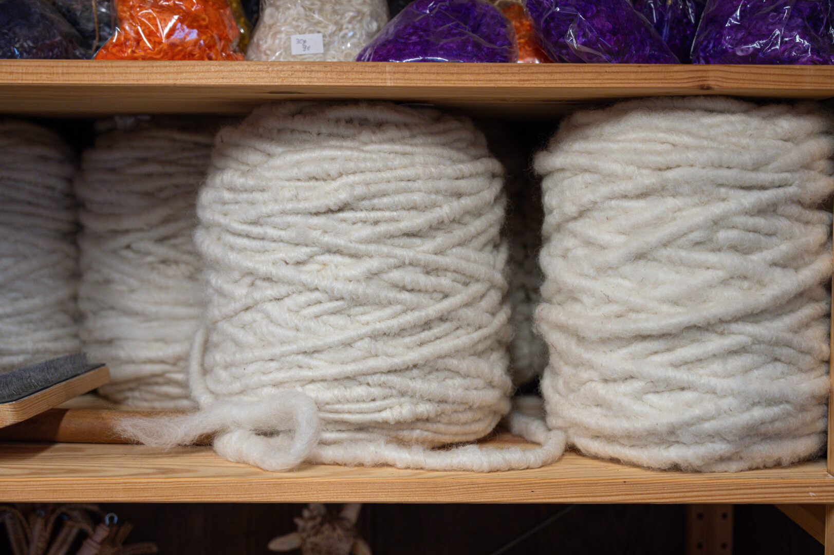 Gautas siūlas dvejinamas – rateliu suvejamas po du, tada sukamas į gijas, plaunamas, gali būti dažomas, o išdžiovinus ir į kamuoliukus suvyniojus jau ir virbalus bus galima imti.