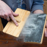 Jau paruoštas specialus suolelis, ant kurio bus guldomos ir elektriniu prietaisu kerpamos ožkos. Tokia procedūra nelengva – kerpamosios nenusiteikusios labai ramiai gulėti.