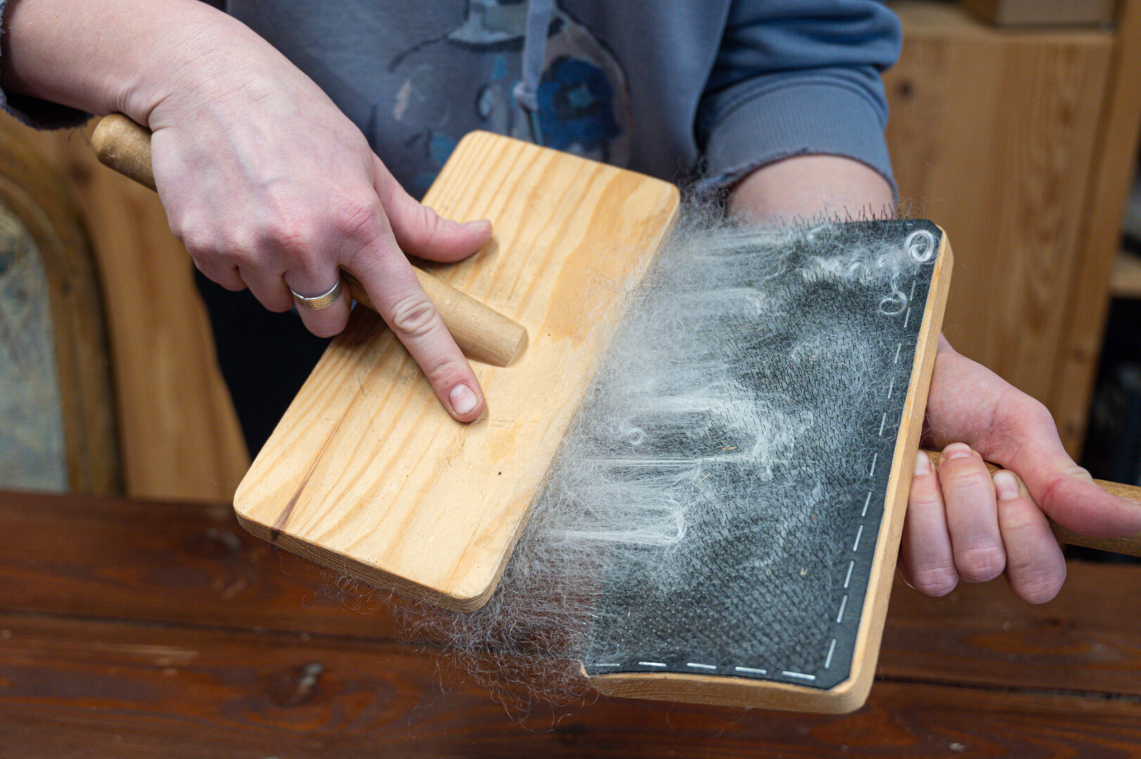 Iš surinktos, iššukuotos Kerio vilnos kartu su ožkų moheriu verpiami ypatingi – stiprūs, šilti ir net, sako, gydantys siūlai.