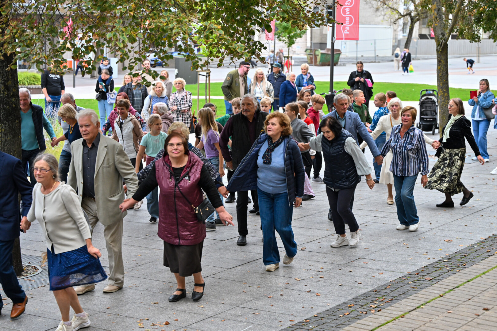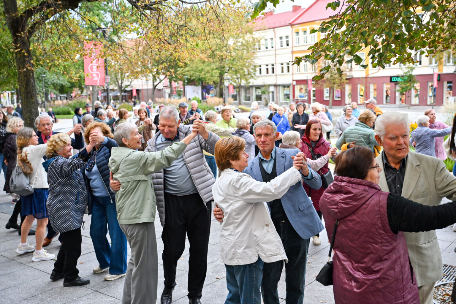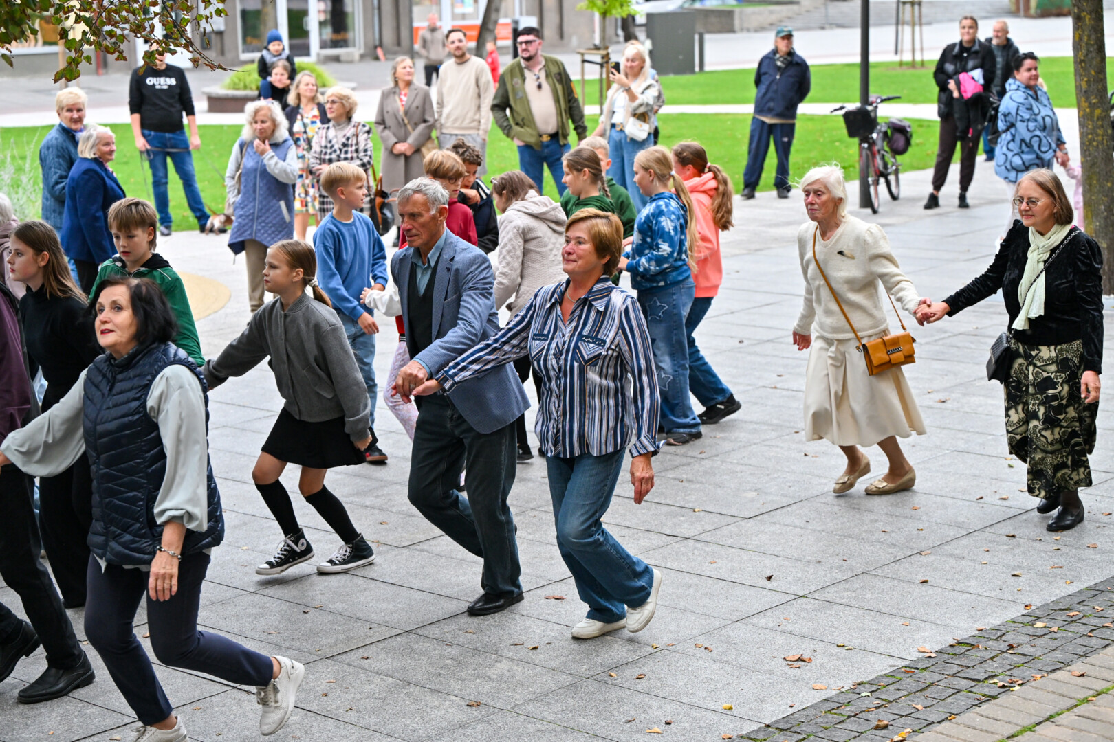 O kad žiūrint į šokančiuosius ir pačiam norisi kojas kilnoti, buvo akivaizdu penktadienio vakarą. Kartu su šokėjais rateliuose sukosi ir praeiviai – nuo mažiausių iki senjorų.