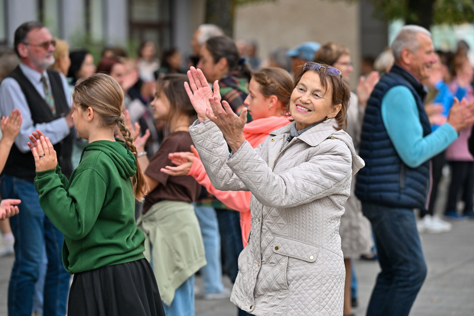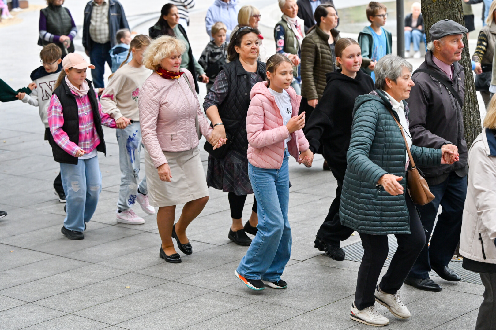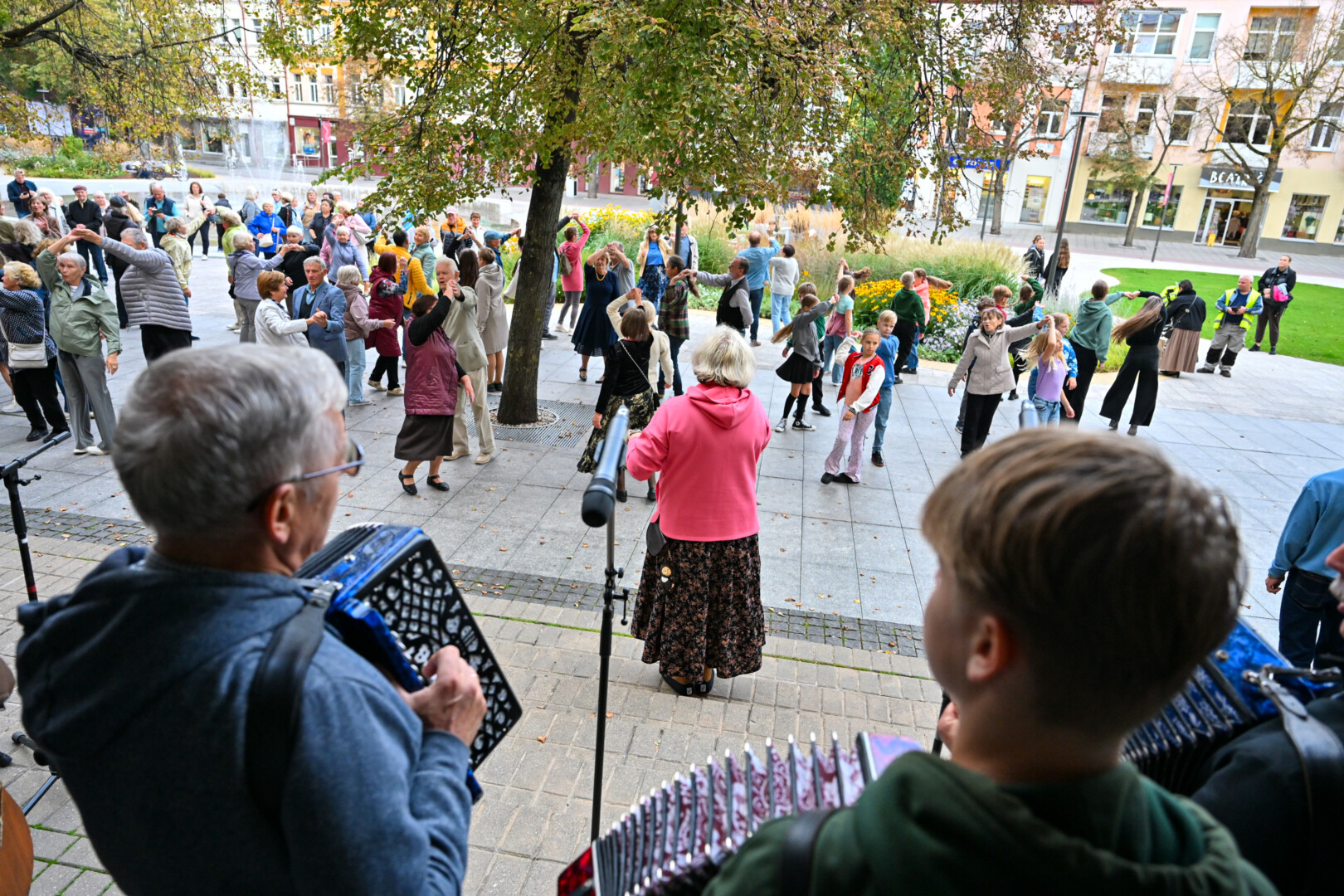O kad žiūrint į šokančiuosius ir pačiam norisi kojas kilnoti, buvo akivaizdu penktadienio vakarą. Kartu su šokėjais rateliuose sukosi ir praeiviai – nuo mažiausių iki senjorų.