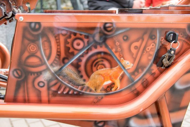 „Dėl dviračių yra tokia problema – juos pagamina ir pamiršta. Sportiniai, kalnų dviračiai, aišku, skiriasi, bet esmė juk ta pati – rėmas, du ratai… Net ir pakeitęs detalių išdėstymą, nieko ypatingo nesugalvosi. Triračiai – kas kita. Tad įkvėptas internete pamatytų „čioperių“, nusprendžiau ir pats panašų pasigaminti – tik su trim ratais“, – aiškino Sigitas.